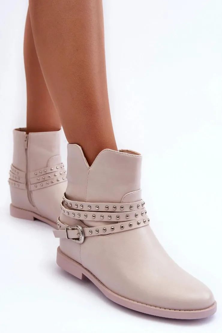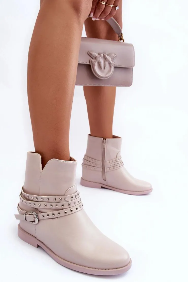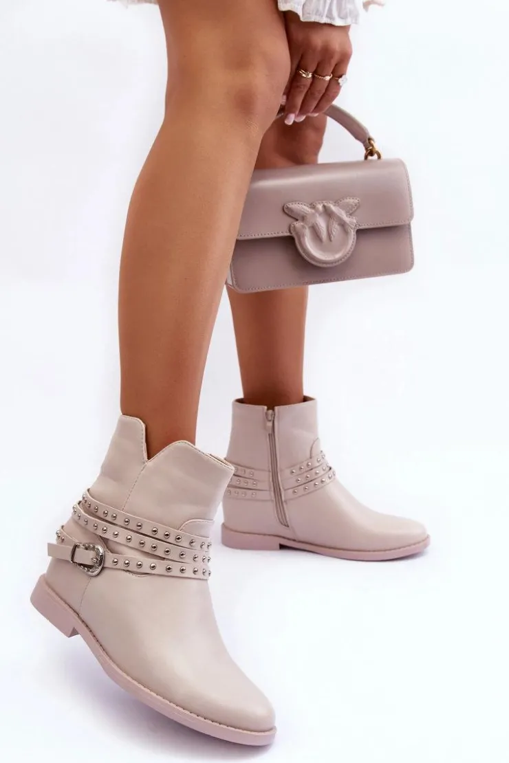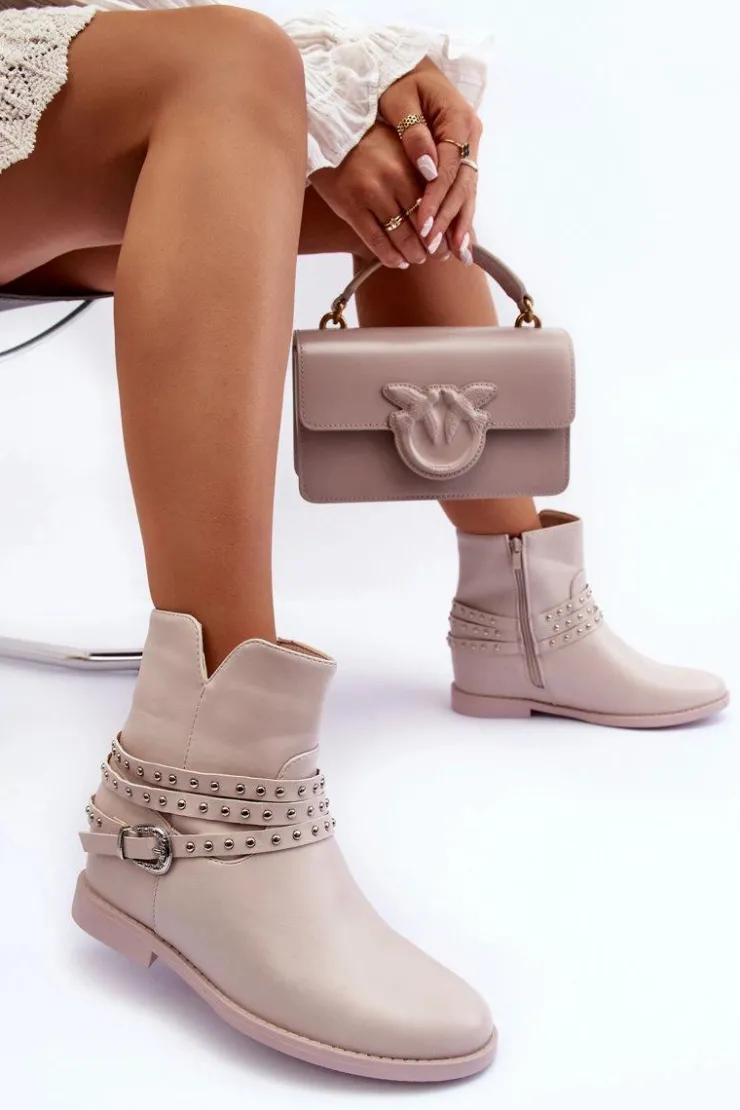 Boto Czarne Botki|Brązowe I Beżowe Botki*Zdobione Skórzane Botki Damskie Na Płaskim Obcasie Beżowe Adkrana