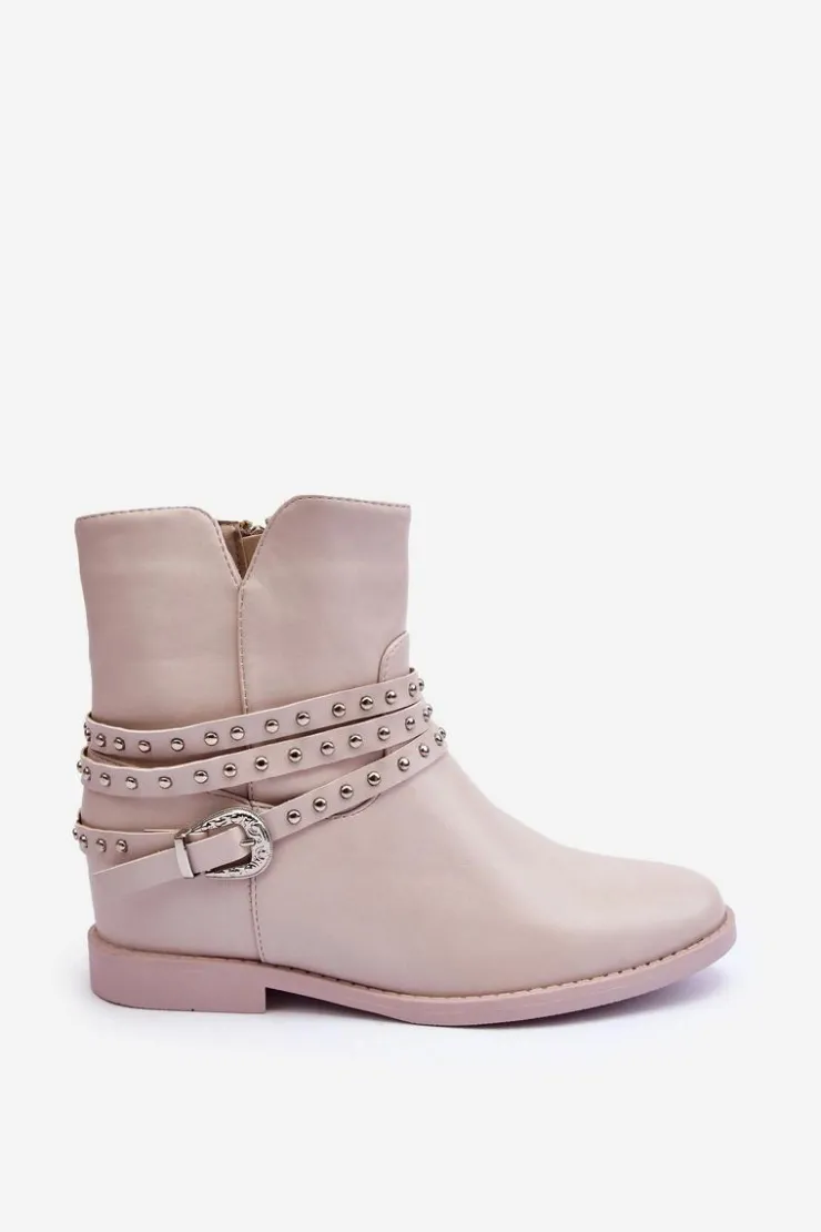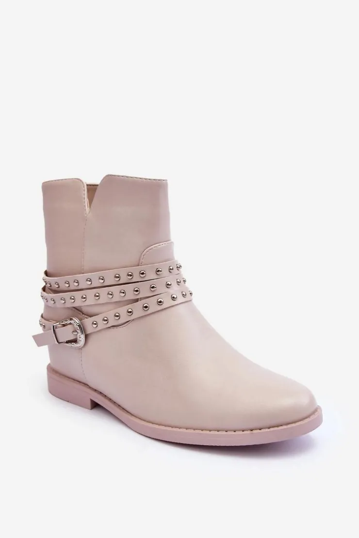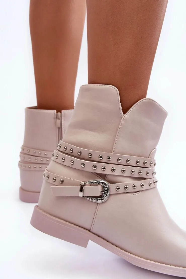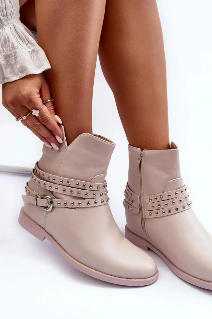 Boto Czarne Botki|Brązowe I Beżowe Botki*Zdobione Skórzane Botki Damskie Na Płaskim Obcasie Beżowe Adkrana