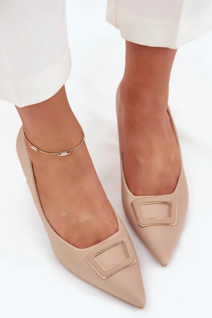 Czółenka damskie z eko skóry, osadzone na obcasie w formie słupka, to elegancka propozycja na różne okazje. Z przodu ozdobna klamra dodaje im wyjątkowego charakteru, a noski w szpic optycznie wysmuklają nogi. Idealne do sukienek, spódnic czy spodni, te czółenka łączą styl, wygodę i nowoczesny wygląd, tworząc ponadczasową klasykę w Twojej garderobie. Przy wyborze rozmiaru prosimy kierować się tabelą rozmiarów