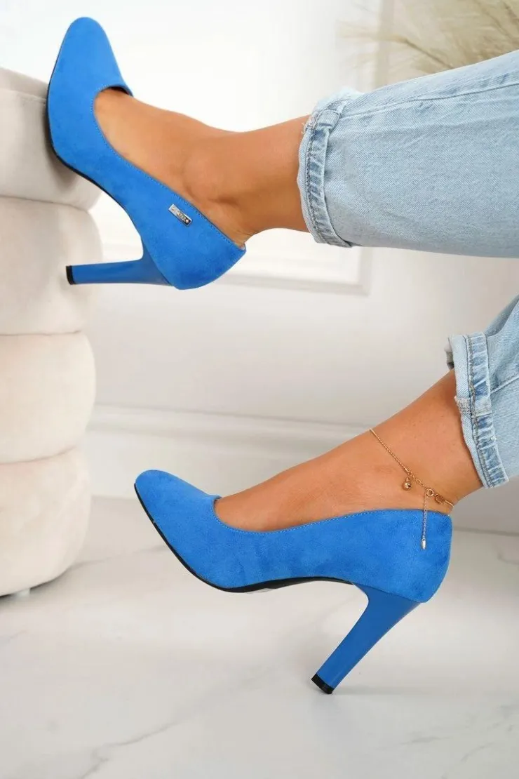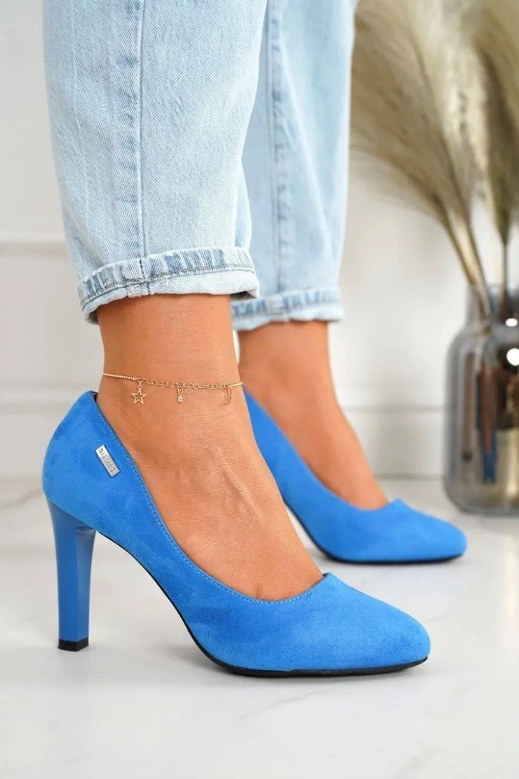 Boto Czółenka Na Słupku*Klasyczne Czółenka Na Słupku Zamszowe Niebieskie Eliana