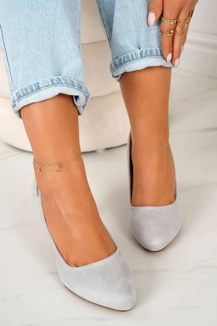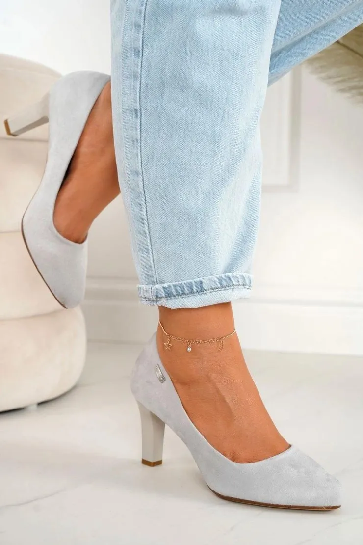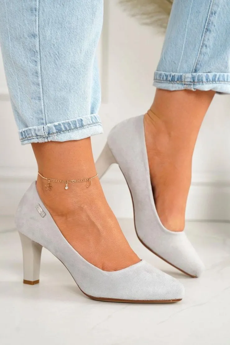 Boto Czółenka Na Słupku*Klasyczne Czółenka Na Słupku Zamszowe Szare Eleanor