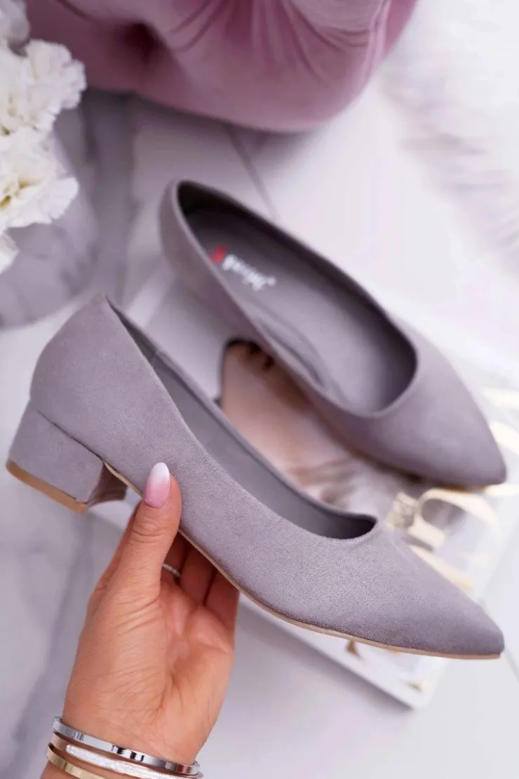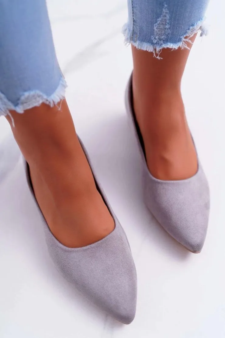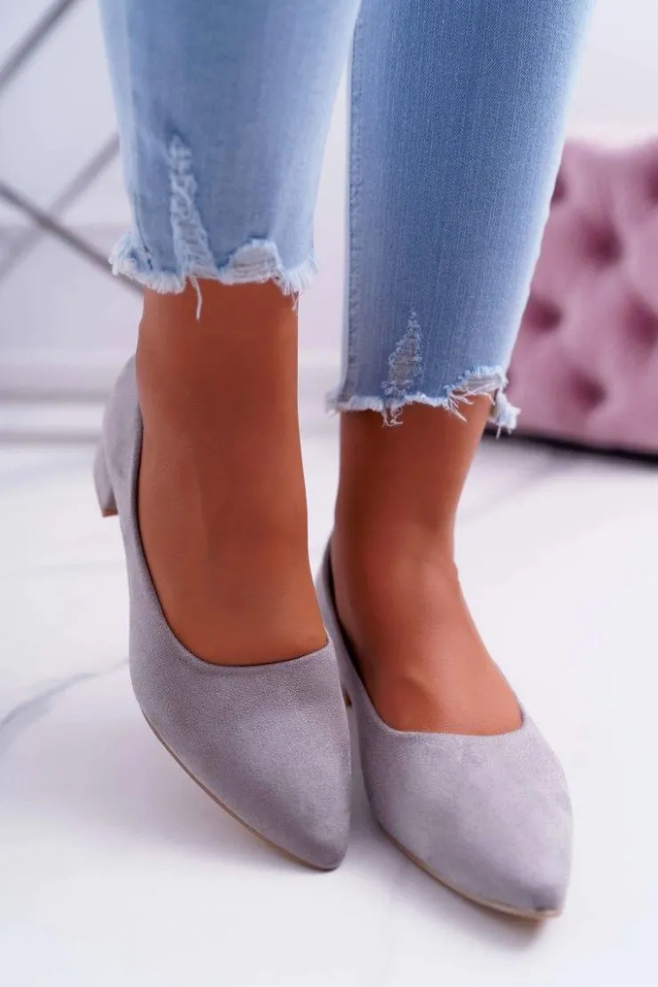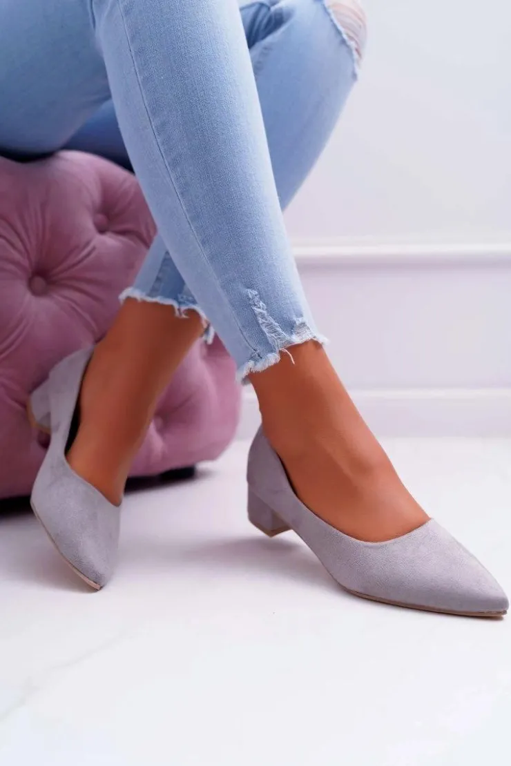 Czółenka na niskim obcasie wykonane z eko zamszu. Modny fason dostępny w wielu pięknych kolorach! Przy wyborze rozmiaru prosimy kierować się tabelą rozmiarów