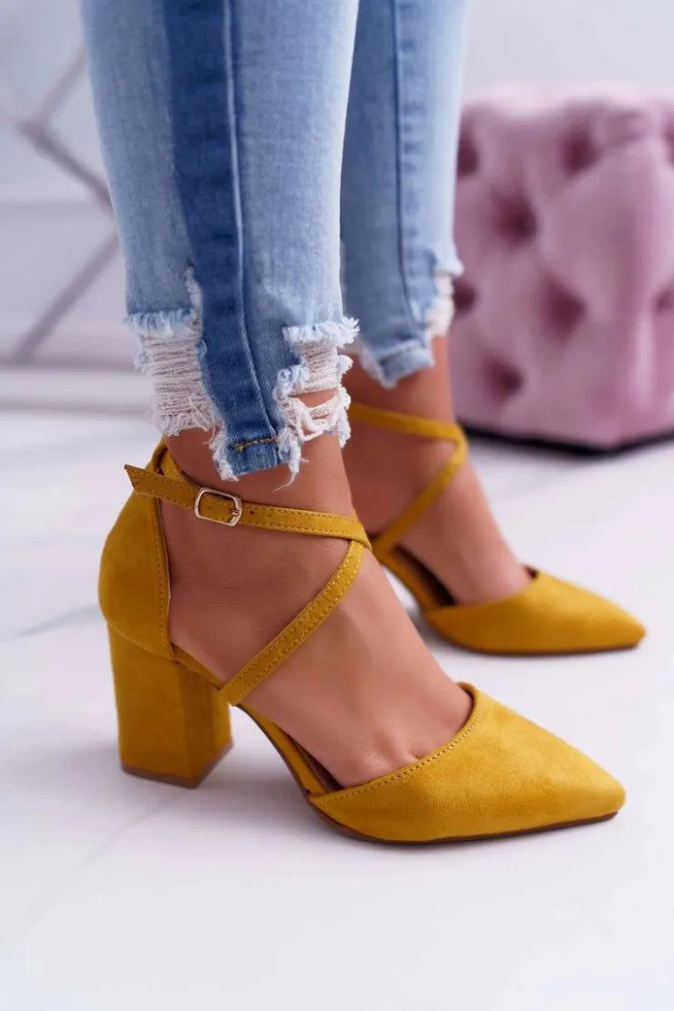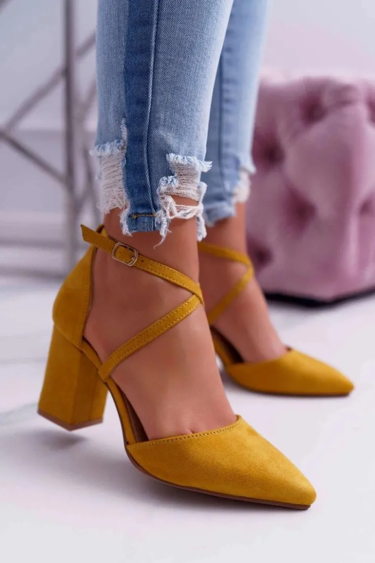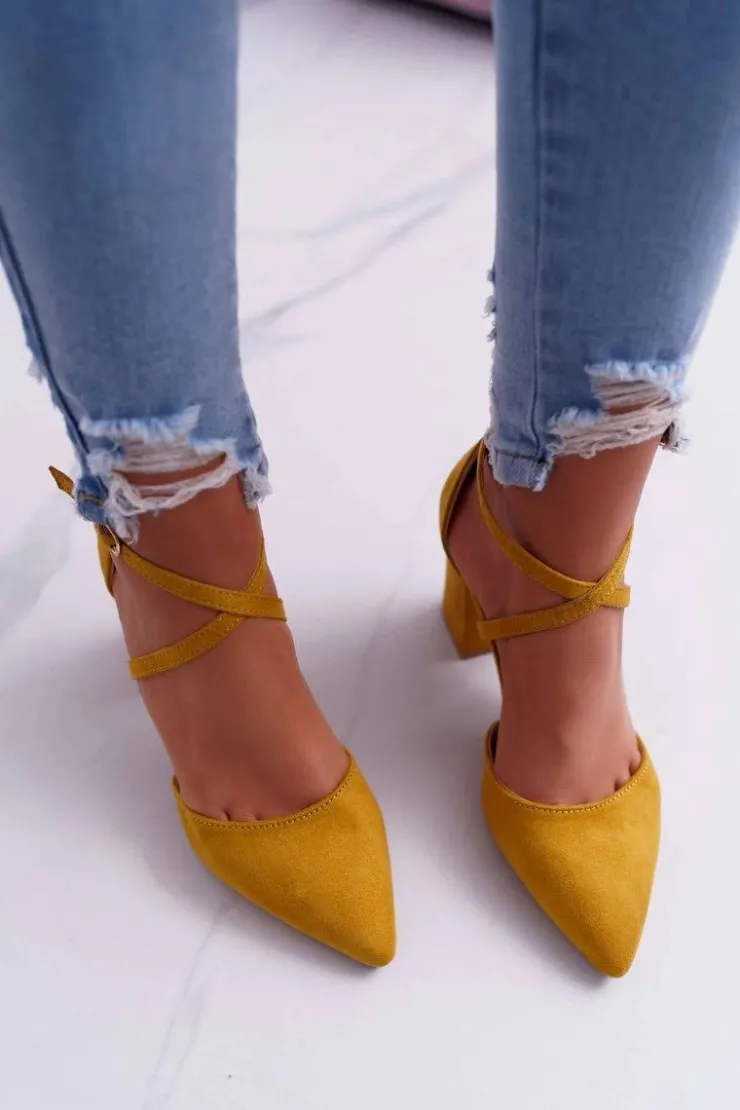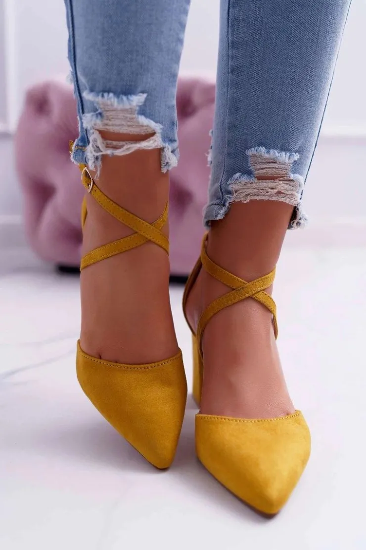 Boto Czółenka Zamszowe|Czółenka Na Słupku*Czółenka Damskie Na Słupku W Szpic Żółte Traffic
