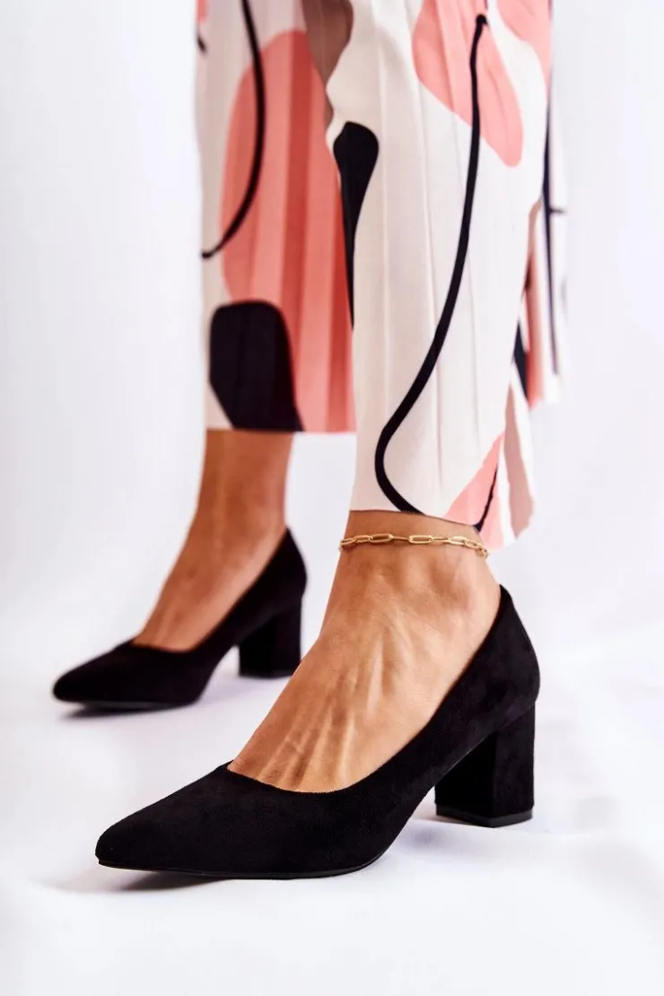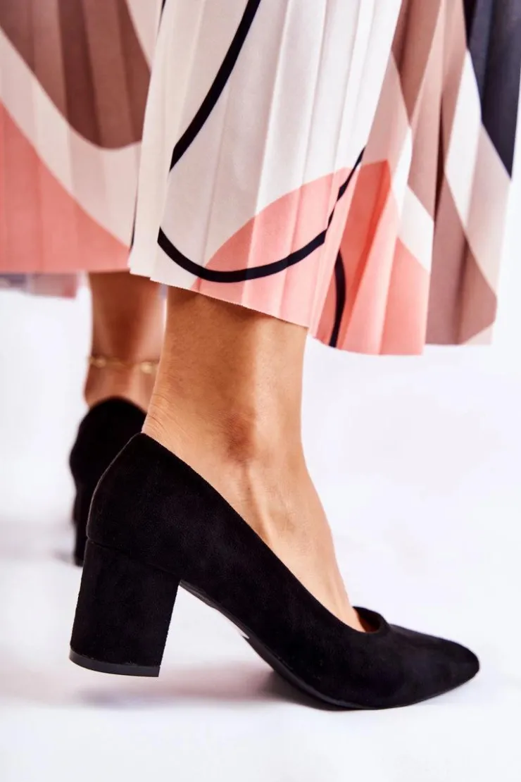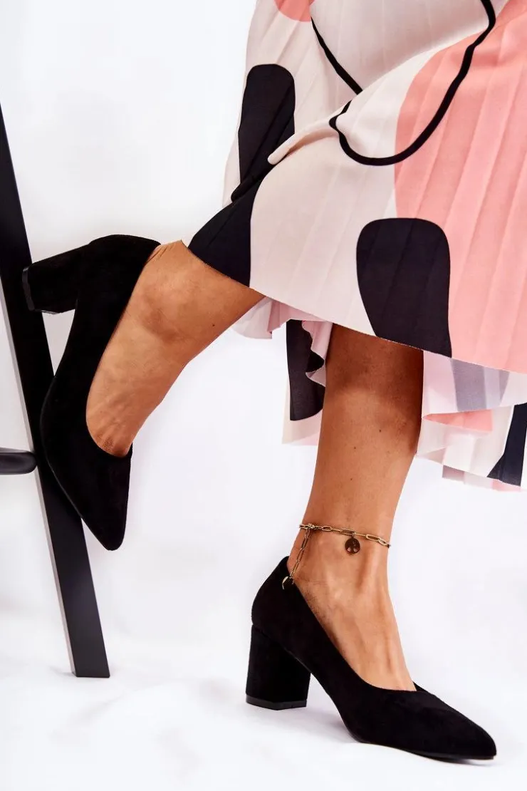 Klasyczne czółenka świetnie sprawdzą się do wielu stylizacji! Wykonane z eko zamszu. Osadzone na stabilnym słupku. Posiadają usztywniany zapiętek. O komfort zadba miękka, eko skórzana wkładka. Nosek w szpic. Model wsuwany. Świetnie sprawdzą się zarówno do pracy, jak i na różnego rodzaju uroczystości. Koniecznie sprawdź także pozostałe modele czółenek dostępnych w naszej ofercie! Przy wyborze rozmiaru prosimy kierować się tabelą rozmiarów