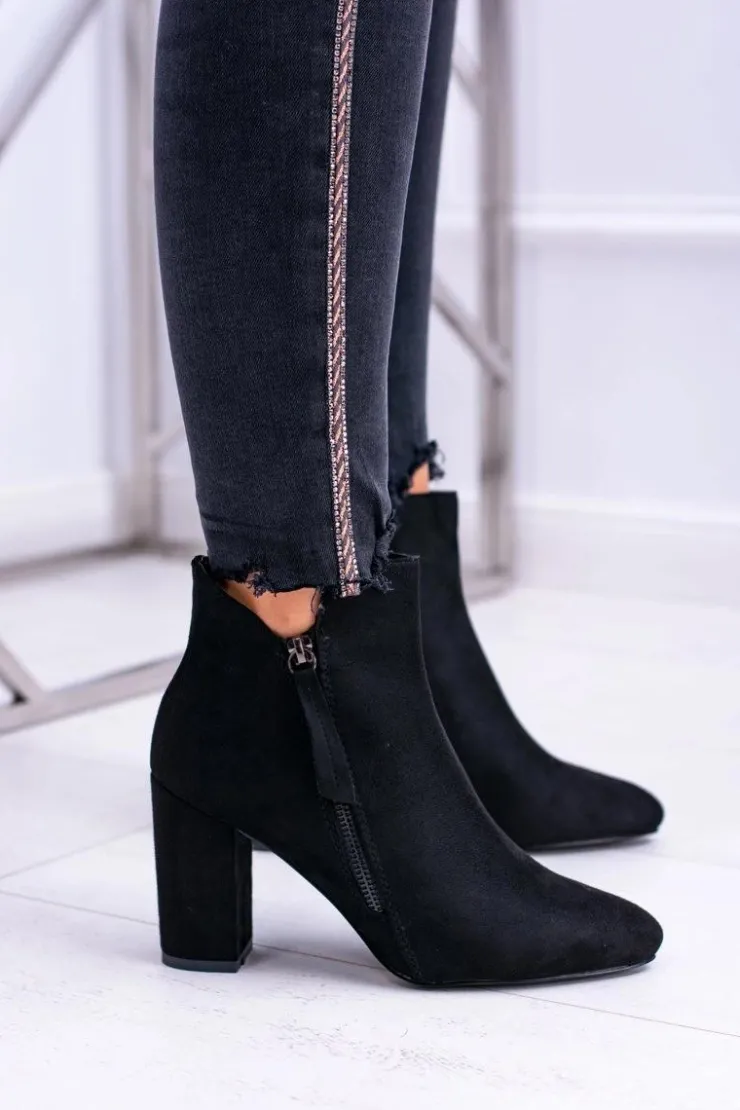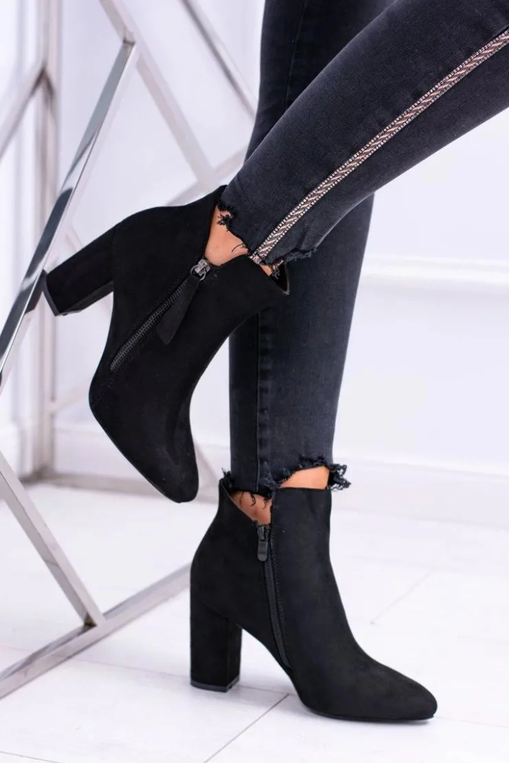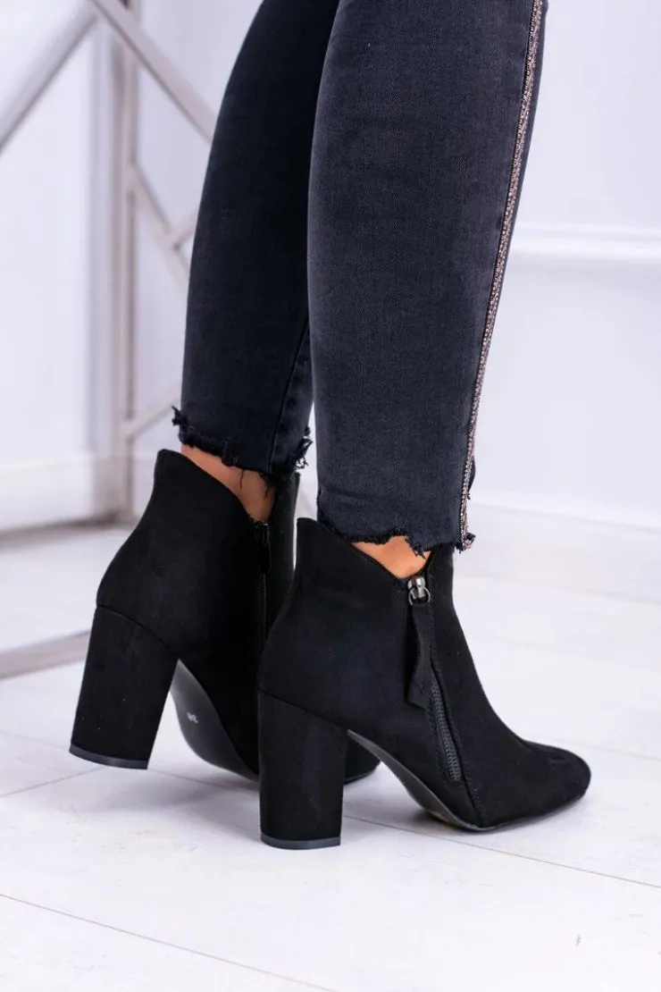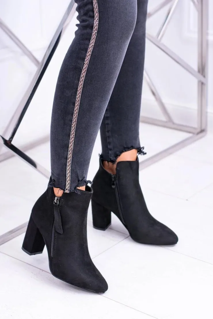 Boto Damskie Botki Czarne na Słupku Zamszowe Egida