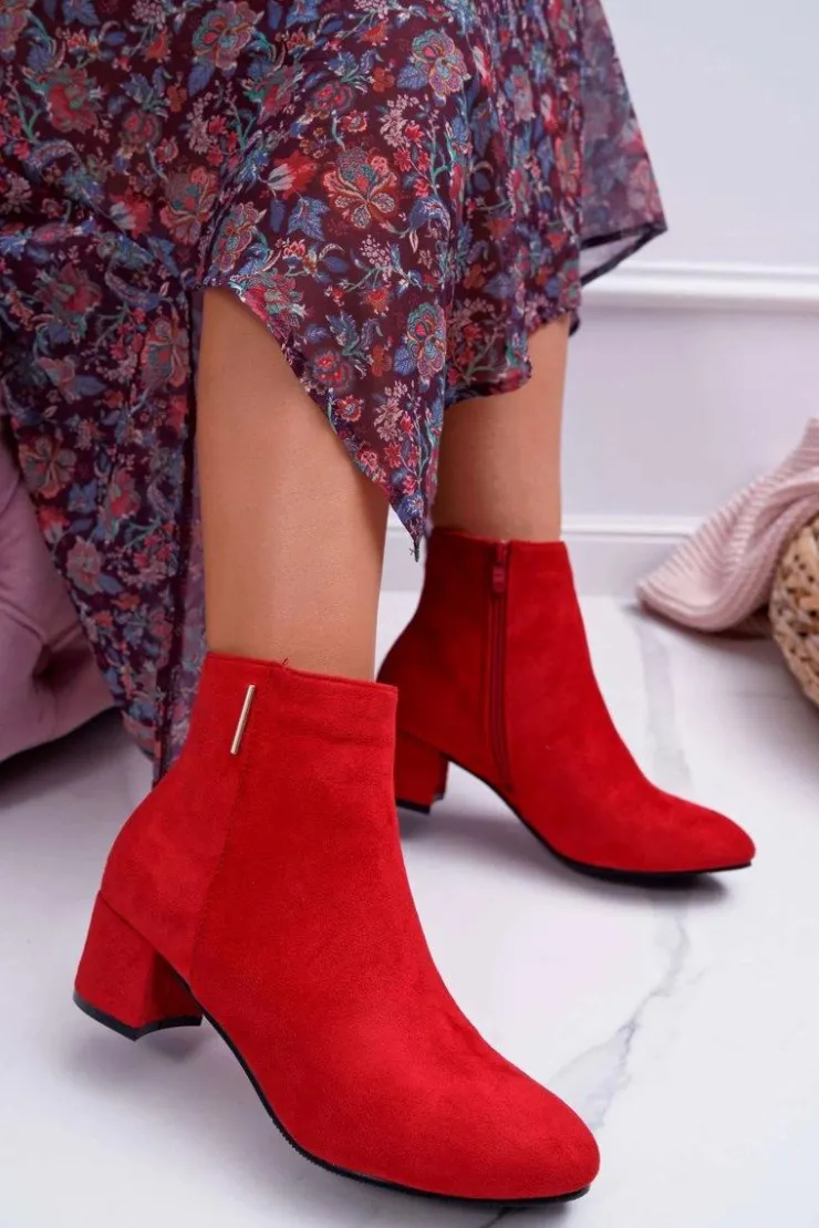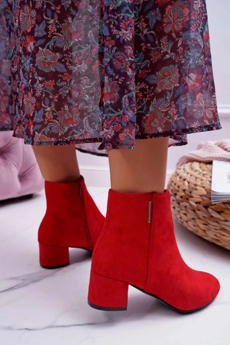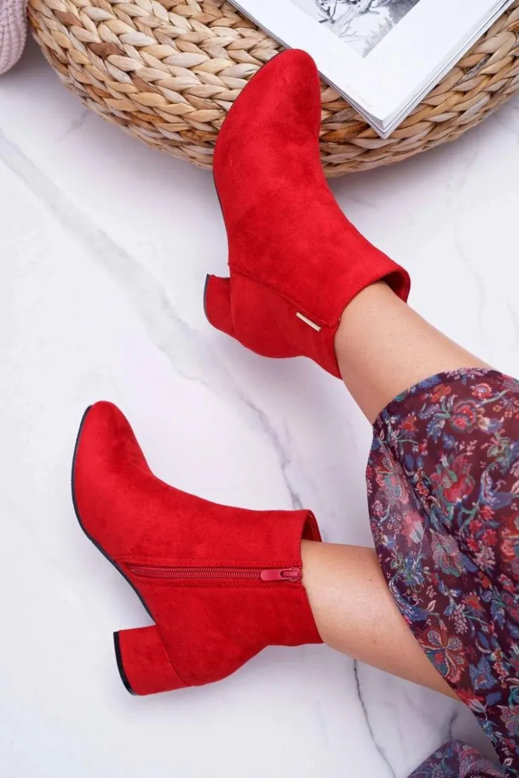 Boto Damskie Botki Ocieplane Czerwone Fiorelli