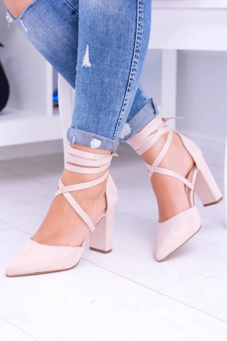 Jeśli podążasz za nowymi trendami, zapewne już wiesz że wiązane czółenka na słupku stały się już klasyką podczas wyboru letnich oraz wiosennych stylizacji. Wykonane z wysokiej jakości ekozamszu, który świetnie wkomponuje się do każdej stylizacji, codziennej jak i tej na wyjątkowe okazje. Dostępne w kilku modnych kolorach. Dopasowanie oraz niecodzienny wygląd zapewni wiązanie wokół kostki. Nosek w szpic jest podkreśleniem ich niesamowitego uroku. Takiej oferty nie można przegapić, podążaj za klasyką!