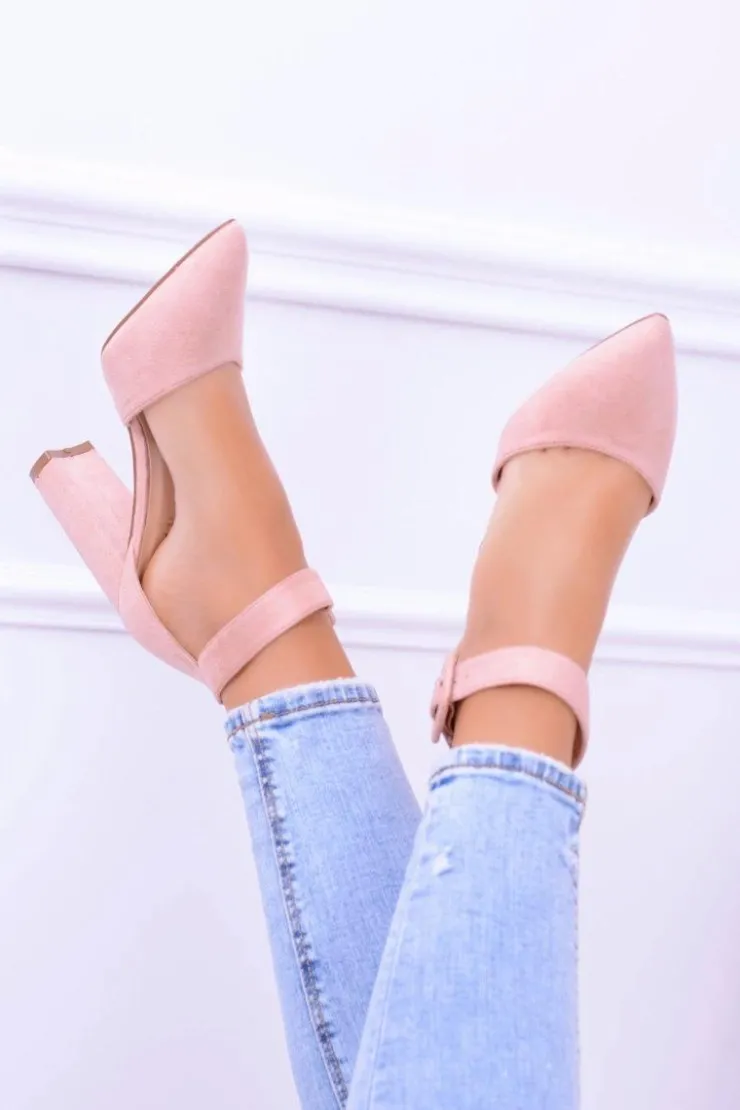 Boto Damskie Czółenka Na Słupku Zamszowe Różowe Harinta