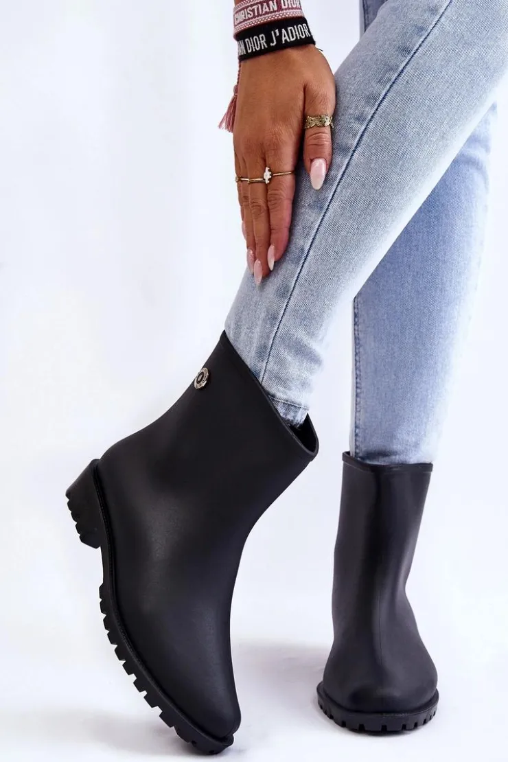 Damskie kalosze zostały wykonane z gumowego tworzywa, które jest odporne na wiatr i deszcz. Model wsuwany. Ozdobione z boku cholewki małym emblematem. Ocieplana kocem obuwniczym wkładka zapewni Ci wygodę podczas użytkowania. Dodatkowo jest wyciągana. Buty zostały osadzone na gumowej, traperowej podeszwie z płaskim obcasem. Przy wyborze rozmiaru prosimy sugerować się tabelą rozmiarów.