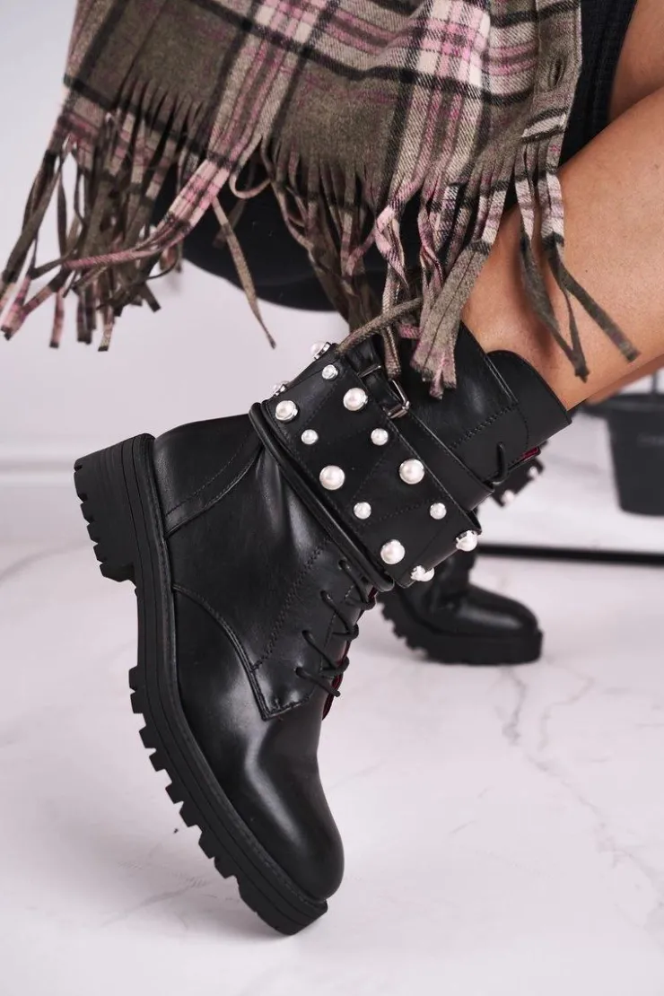 Boto Damskie Ocieplane Botki z Perełkami Czarne Mishigan