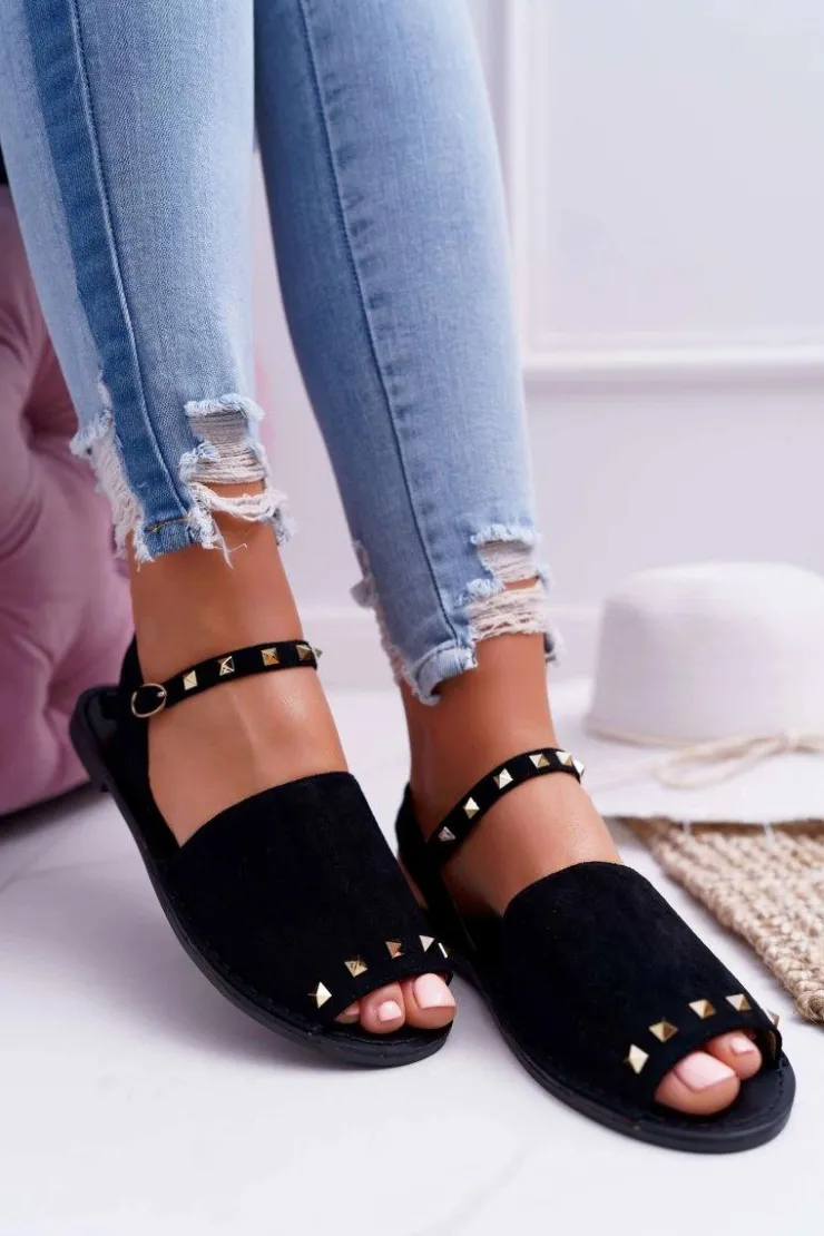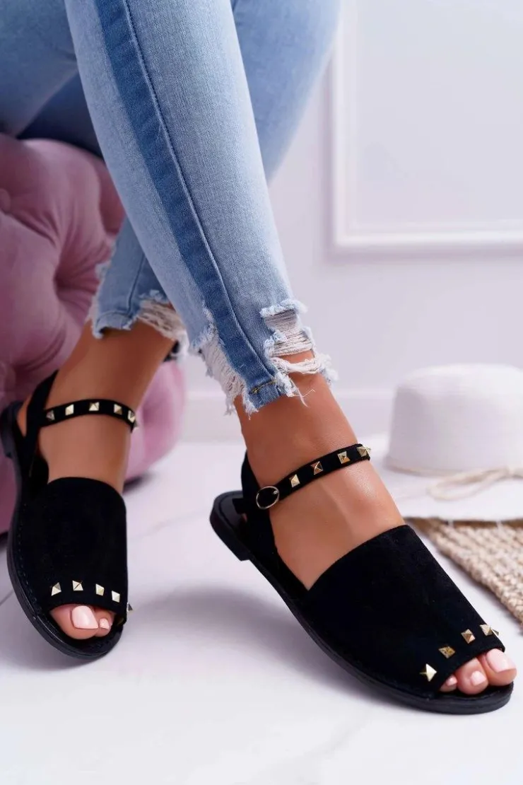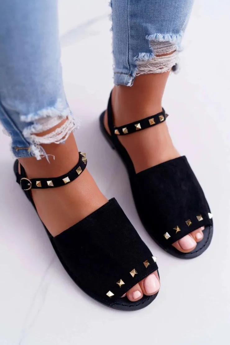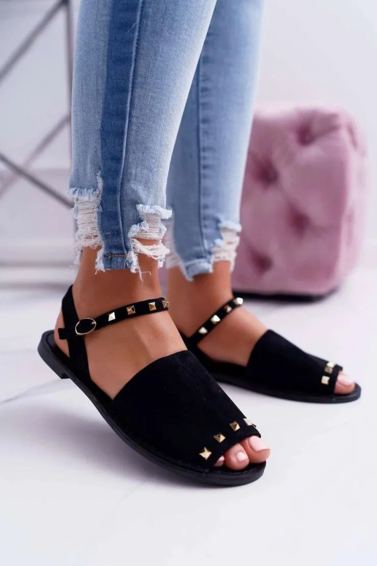 Sandały to nieodłączny element kobiecych letnich stylizacji. Można je założyć dosłownie do wszystkiego! Zapinane na sprzączkę wokół kostki. Dodatkowo zdobione ćwiekami.Przy wyborze rozmiaru prosimy sugerować się tabelą rozmiarów, która dostępna jest po najechaniu bądź kliknięciu w dany rozmiar.