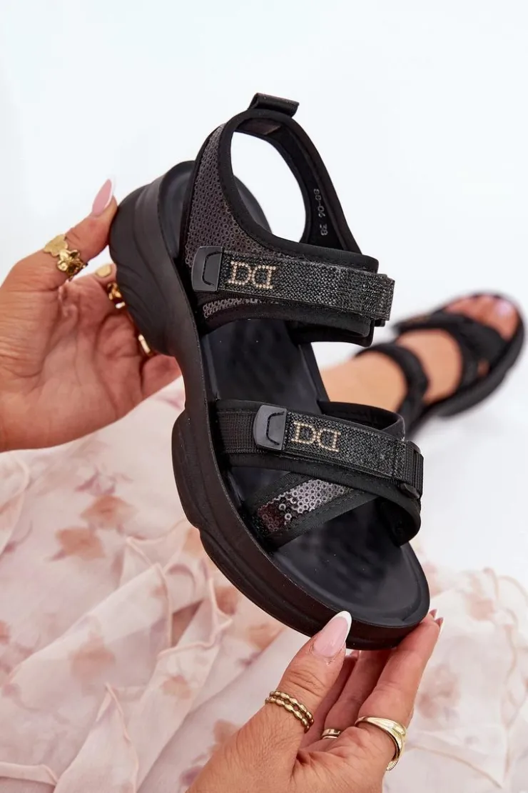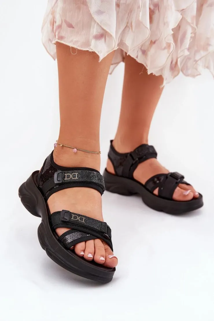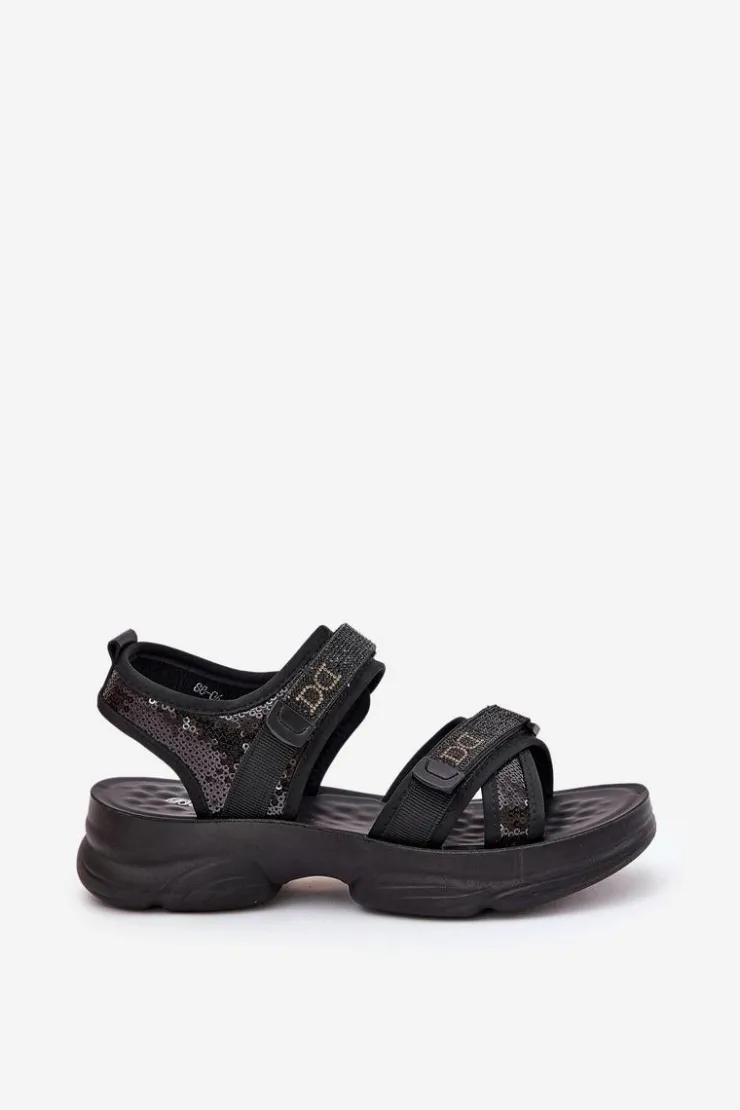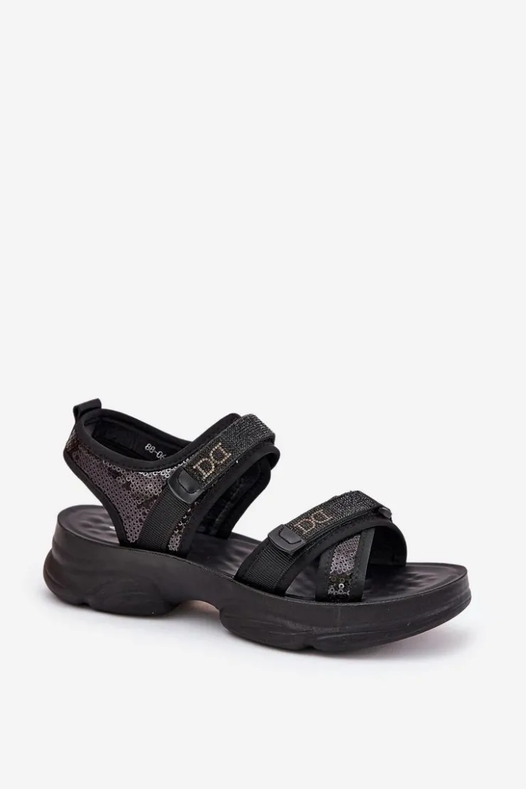 Stylowe sandały damskie wykonane z materiału tekstylnego. Ozdobione cekinami, które nadają im wyjątkowego blasku. Zapinane na rzepy, co zapewnia łatwe i szybkie dopasowanie do stopy. Doskonałe na letnie dni, te sandały łączą wygodę z modnym, błyszczącym akcentem, idealnie pasując do sukienek, spódnic czy szortów. Przy wyborze rozmiaru prosimy sugerować się tabelą rozmiarów.
