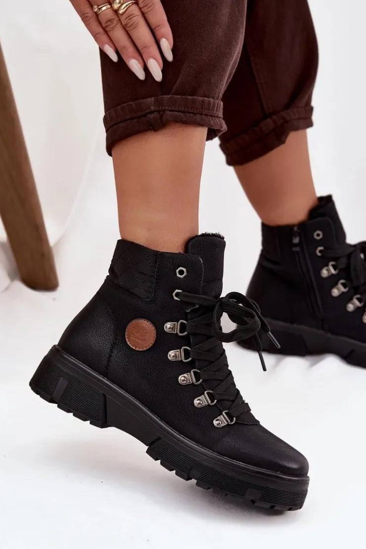 Damskie trapery wykonane z eko skóry to stylowa i praktyczna propozycja na chłodniejsze dni. Osadzone na solidnej platformie, zapewniają stabilność i wygodę podczas chodzenia. Wnętrze ocieplone miękkim futerkiem gwarantuje ciepło i komfort, dzięki czemu buty świetnie sprawdzą się w zimowe dni. Model posiada zarówno sznurowanie, jak i zamek, co ułatwia zakładanie oraz pozwala na idealne dopasowanie do stopy. To uniwersalne trapery, które doskonale uzupełnią codzienne stylizacje. Przy wyborze rozmiaru prosimy sugerować się tabelą rozmiarów.
