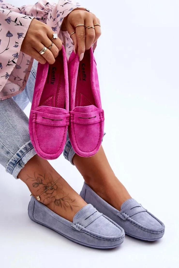 Klasyczne, damskie mokasyny zostały wykonane z miłego w dotyku eko zamszu. Model ten posiada na przodzie ozdobny paseczek. Mokasyny osadzono na antypoślizgowej podeszwie. Miękka wkładka z eko skóry zapewni komfort podczas użytkowania obuwia. Dodatkowo jest delikatnie perforowana. Ten model powinien być właśnie Twój! Przy wyborze rozmiaru prosimy sugerować się tabelą rozmiarów.