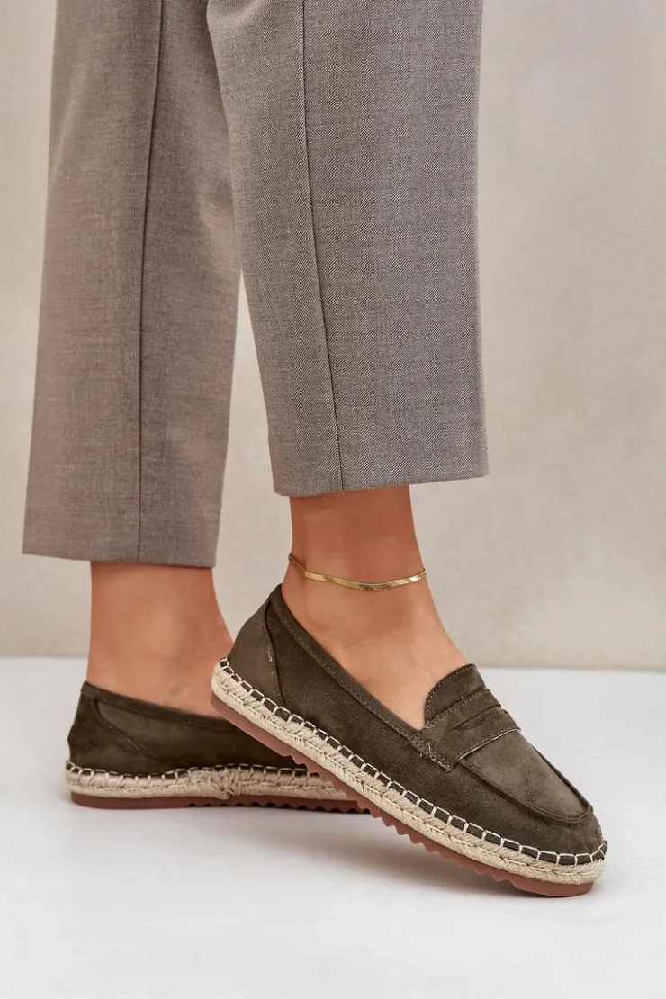 Espadryle damskie z eko zamszu to lekka i stylowa propozycja na ciepłe dni. Osadzone na płaskiej podeszwie, zapewniają komfort noszenia przez cały dzień. Ozdobione jutową plecionką oraz paseczkiem z wycięciem z przodu. Zaokrąglone noski nadają obuwiu kobiecy, delikatny wygląd. Doskonałe do letnich stylizacji! Podczas wyboru rozmiaru prosimy sugerować się tabelą rozmiarów.