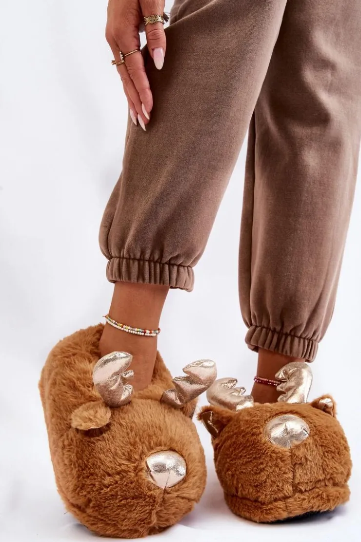 Świetne papcie damskie zostały wykonane z zewnątrz z eko futerka. Podeszwa z delikatnymi wypustkami. Papcie te świetnie izolują przed zimnem. Ten świąteczny model z dekoracją w postaci renifera świetnie sprawdzi się podczas zimowych dni. Wyściółka z materiału tekstylnego. Koniecznie powinnaś mieć ten model! Przy wyborze rozmiaru prosimy kierować tabelą rozmiarów.