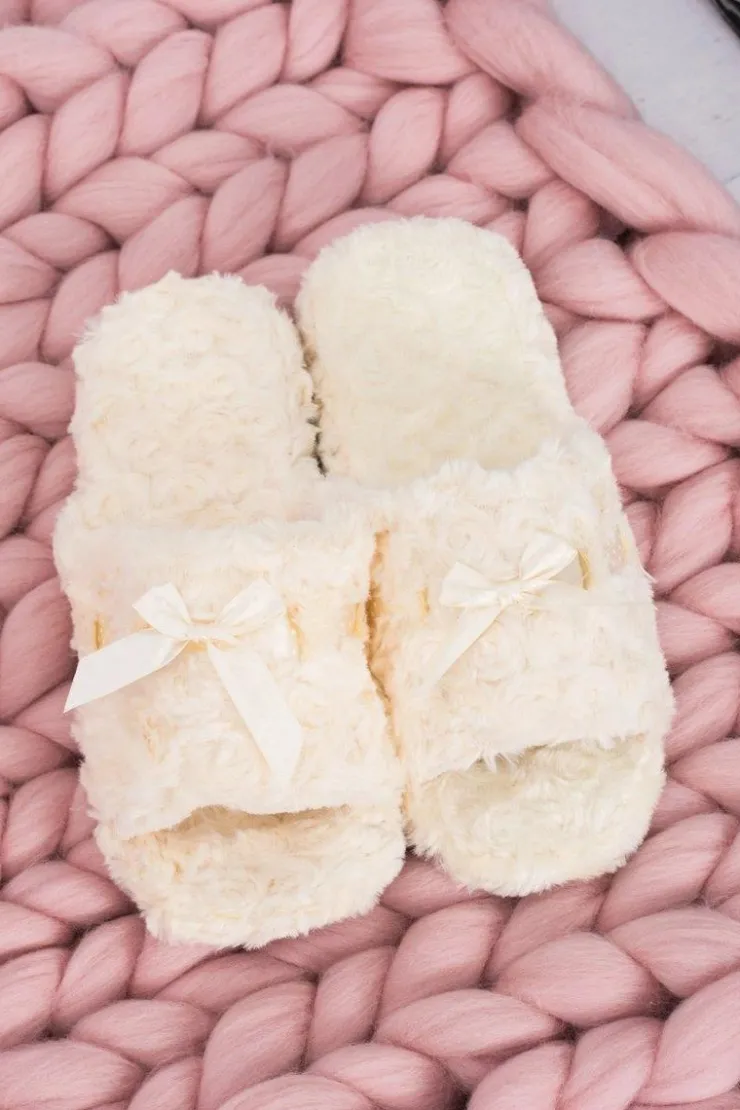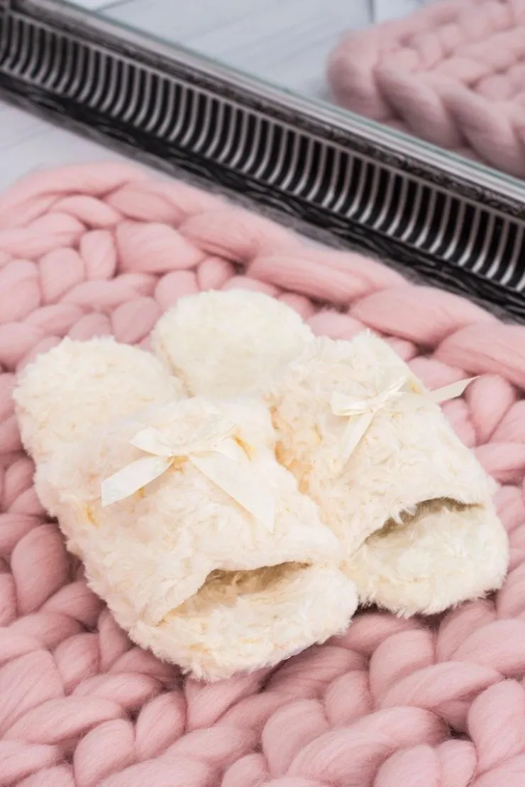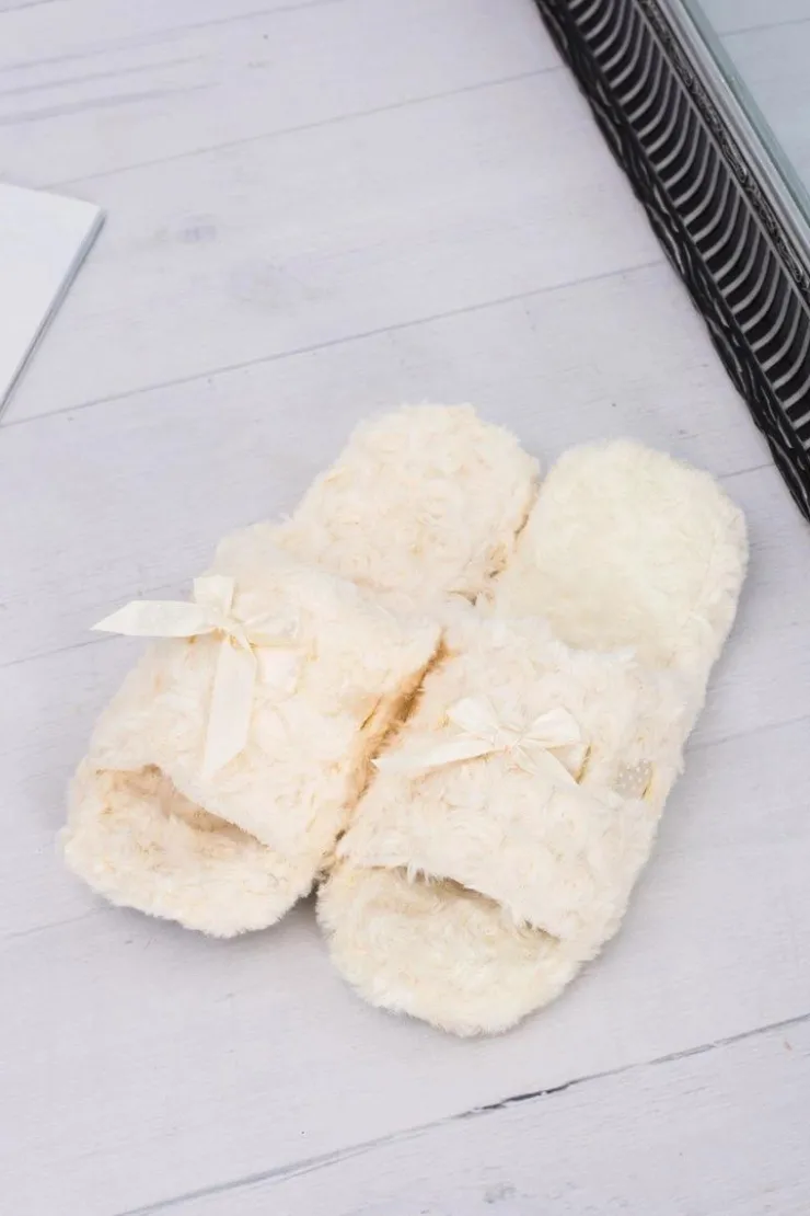 Boto Kapcie Klasyczne*Damskie Klapki Domowe Beżowe Papcie ze Wstążką