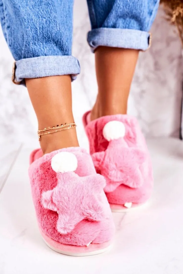 Boto Kapcie Klasyczne*Damskie Papcie Z Futerkiem I Gwiazdką Różowe Night-Night