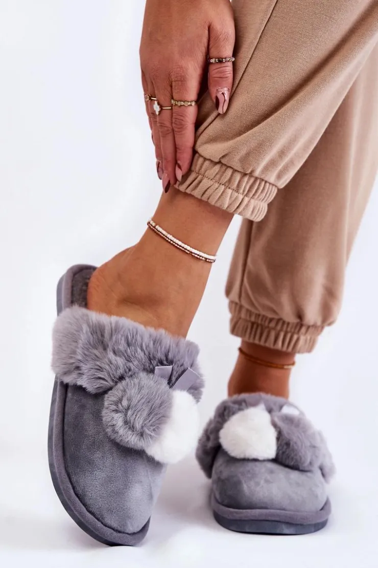 Damskie papcie zostały wykonane z miłej w dotyku tkaniny. Dodatkowo ozdobione pomponami oraz futerkiem. Wewnątrz ocieplone kocem obuwniczym. Wkładka jest miękka i komfortowa podczas użytkowania. Ten model idealnie sprawdzi się podczas chłodniejszych dni. Papcie zostały osadzone na płaskiej podeszwie wykonanej z gumowego tworzywa. Przy wyborze rozmiaru prosimy kierować się tabelą rozmiarów.