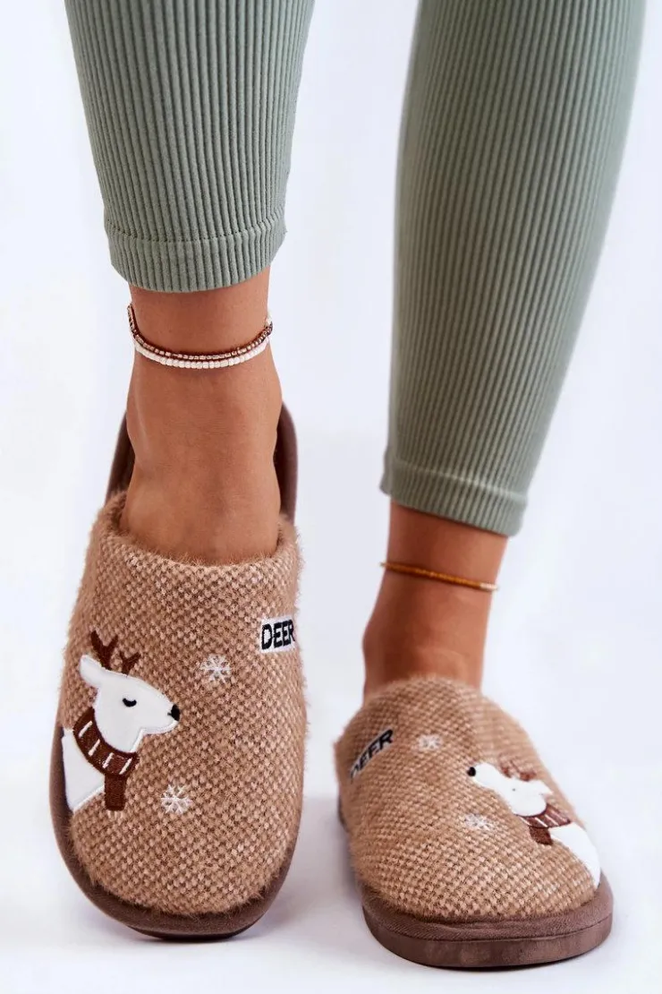 Damskie papcie zostały wykonane z materiału tekstylnego z dodatkiem delikatnego eko futerka. Wewnątrz posiadają ocieplenie w postaci koca obuwniczego. Ozdobione z wierzchu motywem renifera i śnieżynek. Miękka wkładka zapewni komfort podczas użytkowania. Osadzone na gumowej, elastycznej podeszwie. Przy wyborze rozmiaru prosimy sugerować się tabelą rozmiarów.