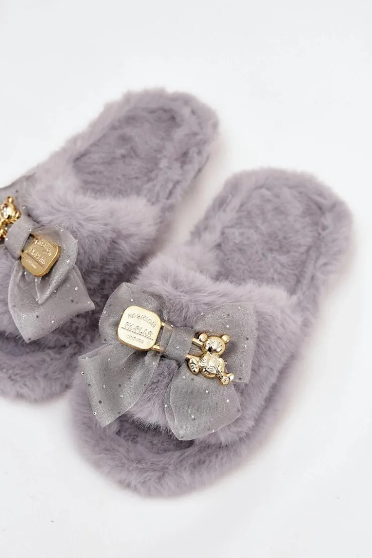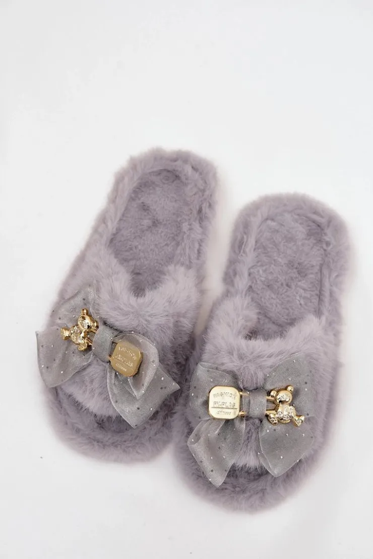 Futrzane kapcie damskie to idealne połączenie komfortu i modnych detali. Wykonane z miękkiego, przyjemnego w dotyku futerka zapewniają wyjątkową wygodę i ciepło. Uwagę przyciąga kokardka z przodu, ozdobiona złotą broszką w formie misia z napisem – to subtelny, a jednocześnie efektowny detal, który nadaje całości uroku i oryginalnego charakteru. Dzięki nim codzienne chwile w domu stają się jeszcze przyjemniejsze i bardziej stylowe. Przy wyborze rozmiaru prosimy sugerować się tabelą rozmiarów.