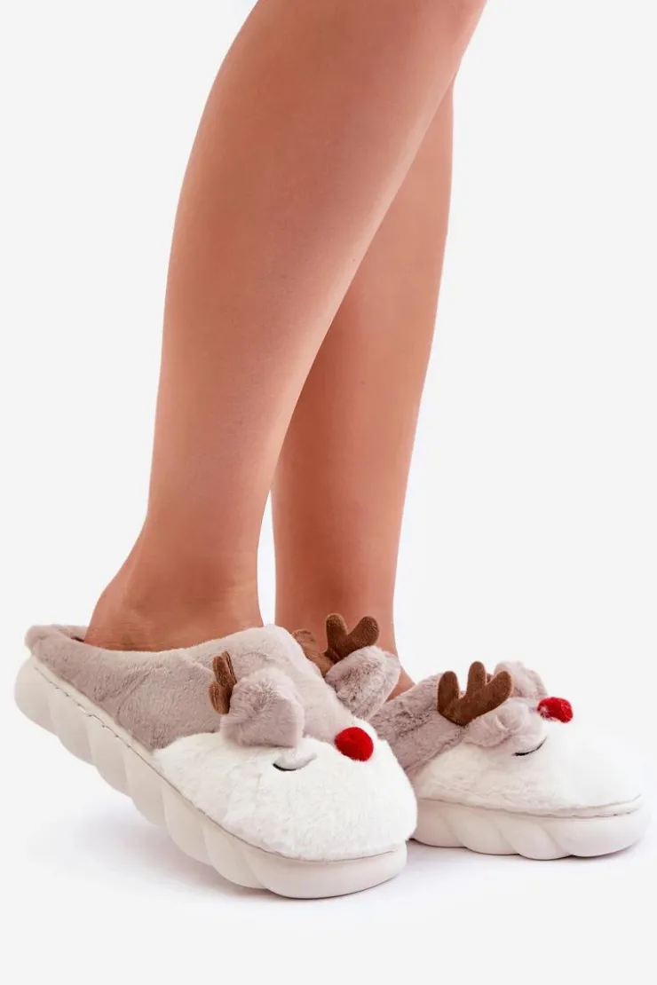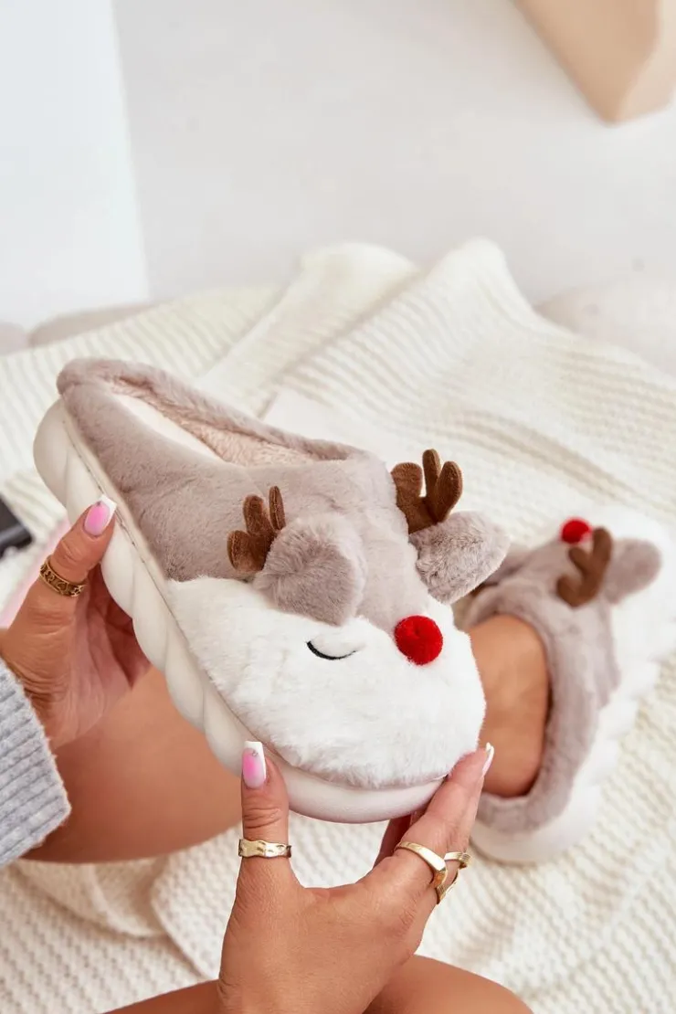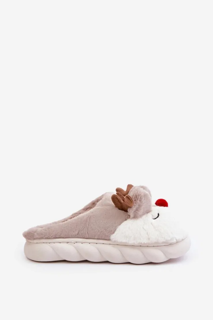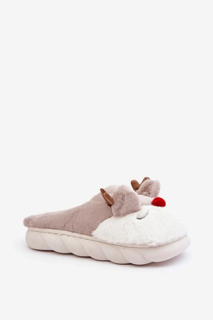 Boto Kapcie Klasyczne*Futrzane Kapcie Damskie Z Motywem Renifera Beżowe Wistira