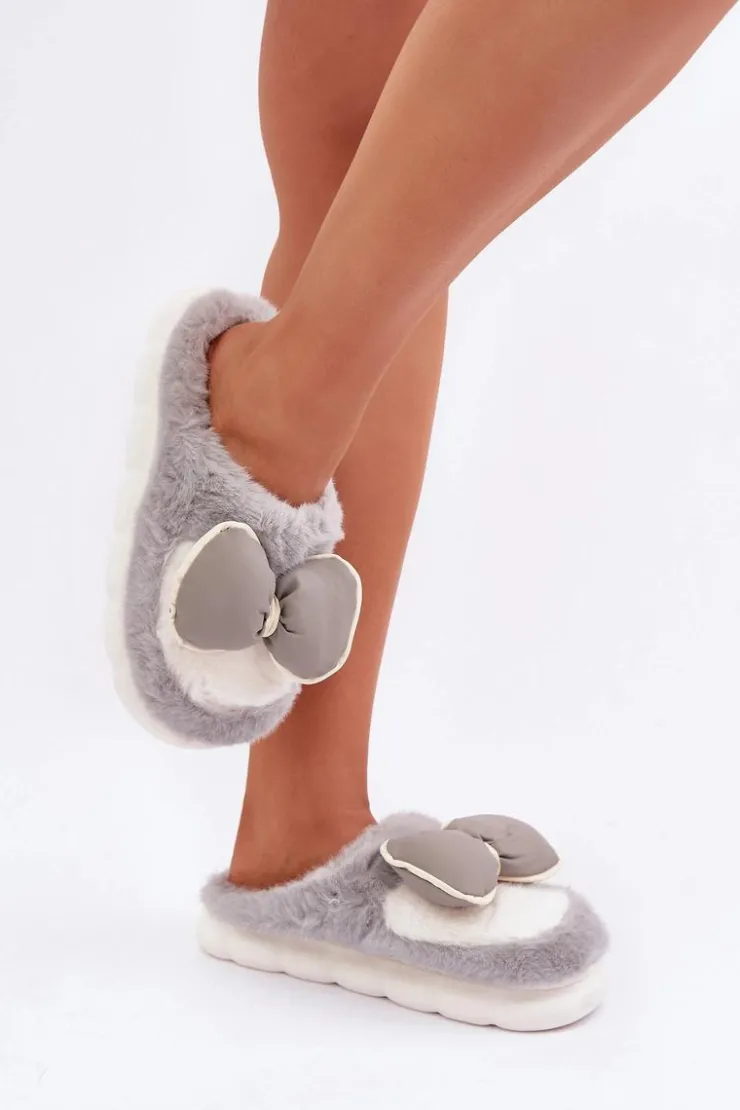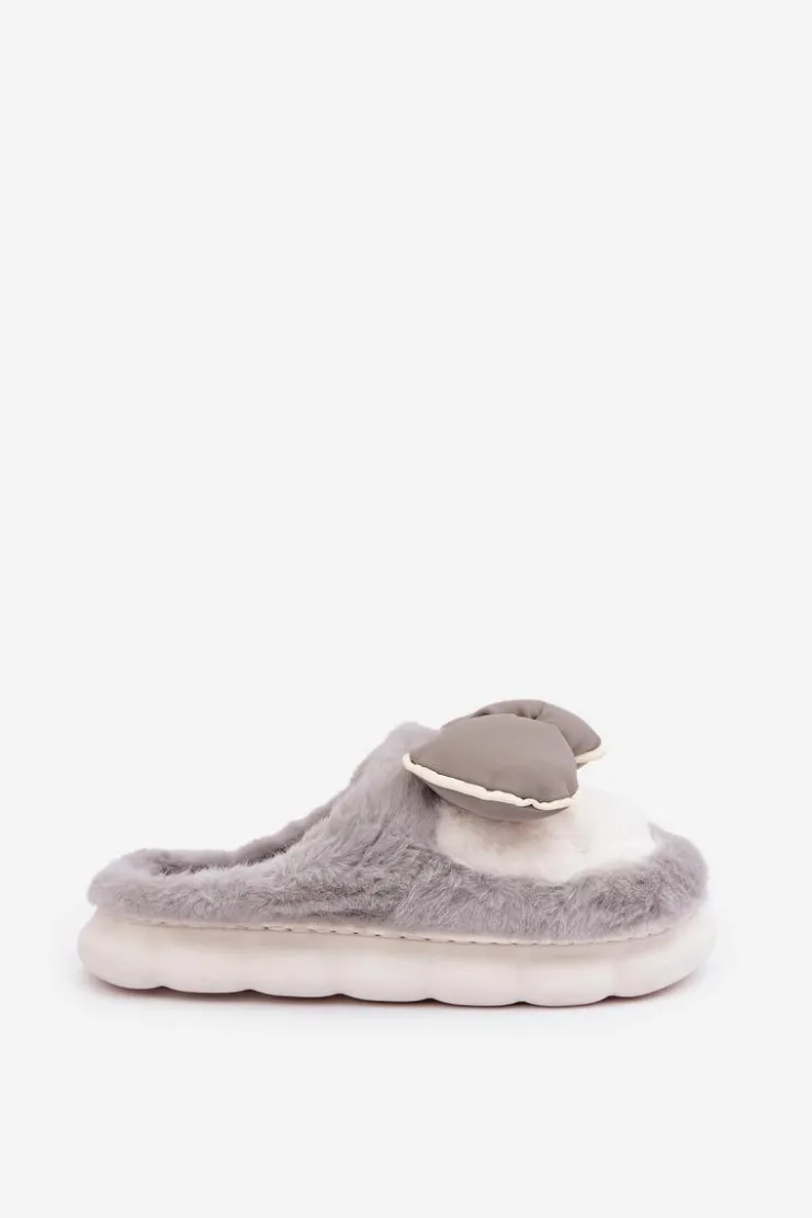 Kapcie damskie wykonane z miękkiego, przytulnego futerka, idealnie otulają stopy, zapewniając ciepło i komfort. Model osadzony na grubszej podeszwie, co dodaje stabilności i izoluje od chłodnego podłoża. Zakryte noski zapewniają dodatkową ochronę przed zimnem, czyniąc kapcie idealnym wyborem na chłodne dni. Przód ozdobiony kokardką, która nadaje wyjątkowego uroku. Stylowe i praktyczne! Przy wyborze rozmiaru prosimy sugerować się tabelą rozmiarów.