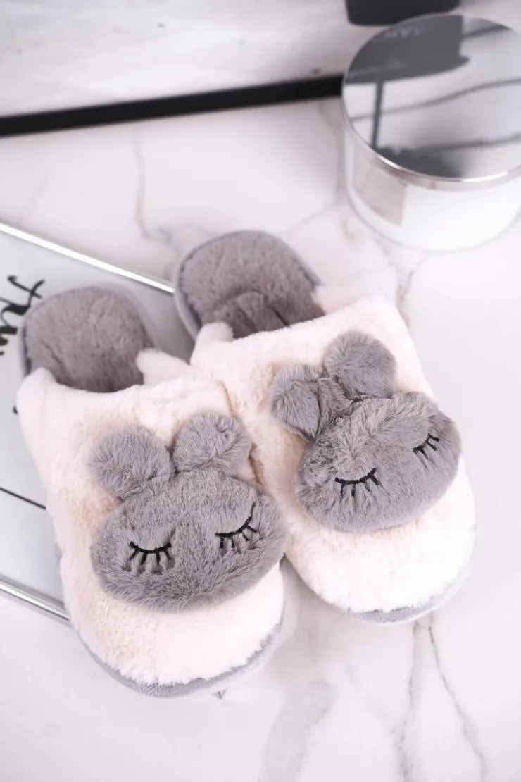 Boto Kapcie Klasyczne|Kalosze Damskie*Papcie Damskie Futrzane Biało Szare Rabbit