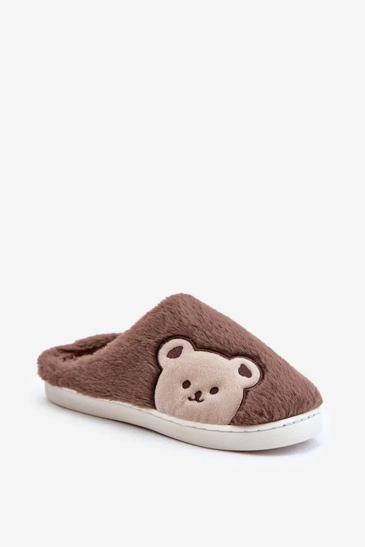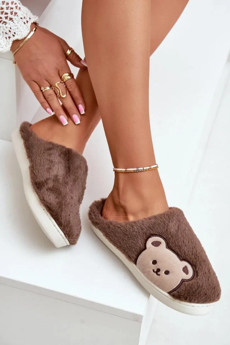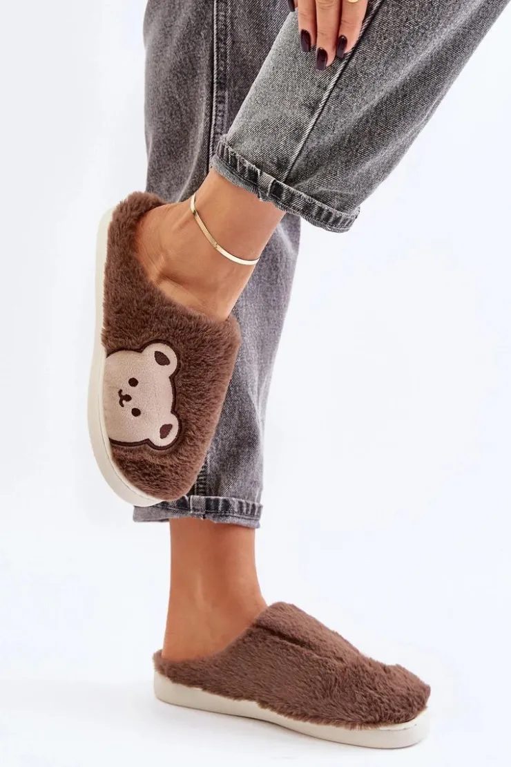 Boto Kapcie Klasyczne*Kapcie Damskie Futrzane Z Misiem Brązowe Fiorinella Brązowy
