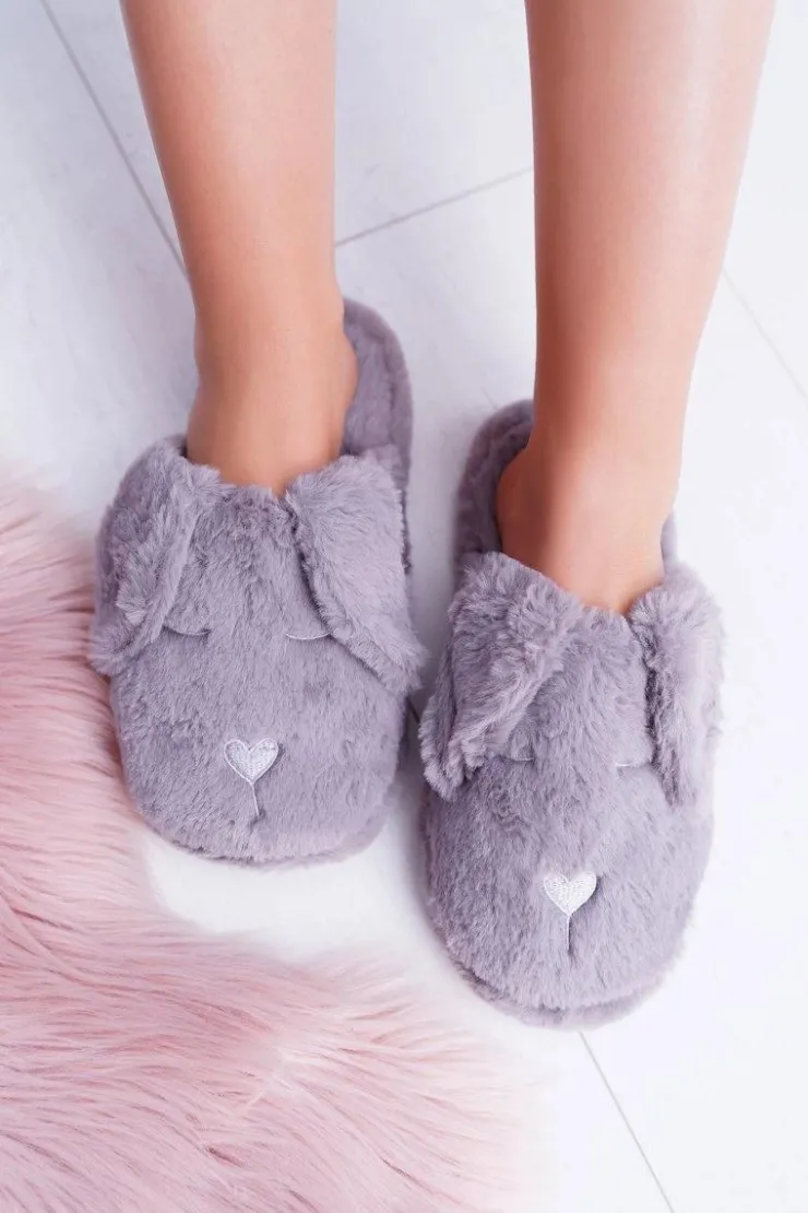 Boto Kapcie Klasyczne*Kapcie Damskie SOXO Puchate Pieski z Uszami Szare