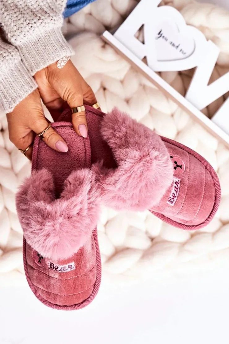 Boto Kapcie Klasyczne|Klapki Z Futerkiem*Damskie Klapki Papcie Z Futerkiem Pudrowy Róż Teddy