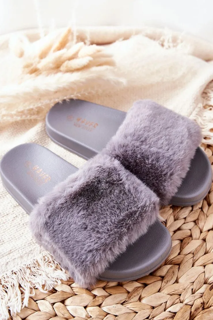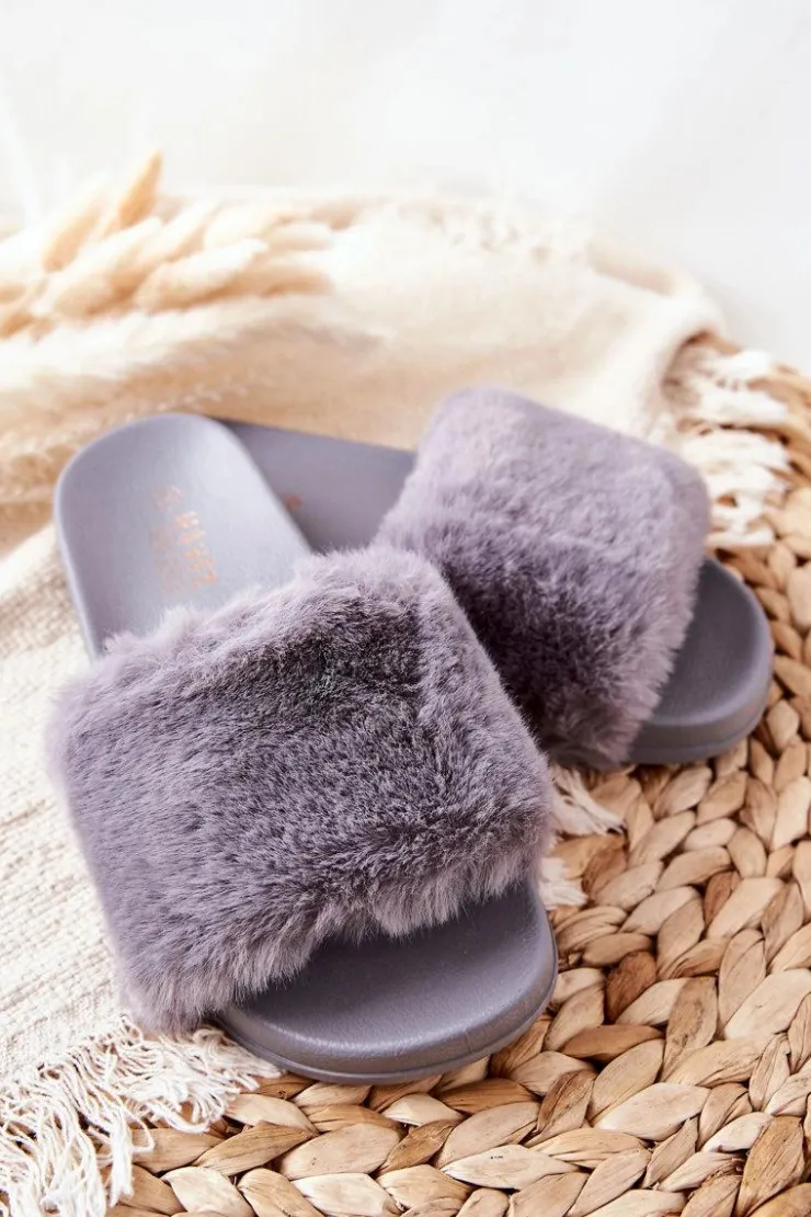 Boto Kapcie Klasyczne|Klapki Z Futerkiem*Gumowe Profilowane Klapki Z Futerkiem Szare Emmie