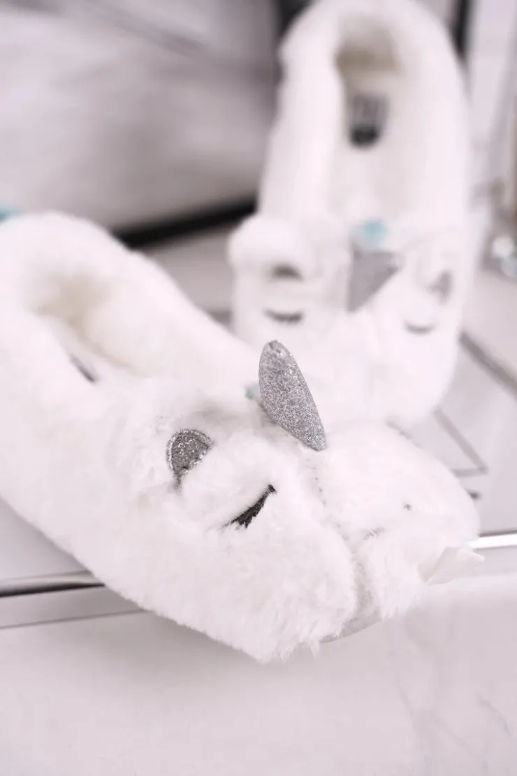 Boto Kapcie Klasyczne*Papcie Damskie Futrzane Jednorożce Białe Rainbow