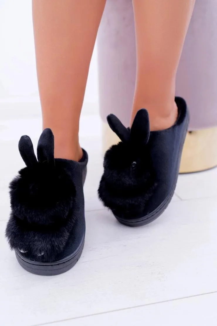 Boto Kapcie Klasyczne*Papcie Damskie Klasyczne Z Królikiem Czarne Howi