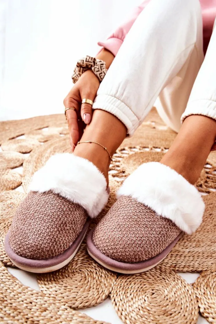 Boto Kapcie Klasyczne*Papcie Ocieplane Z Futerkiem Jasnobrązowe Flamarin