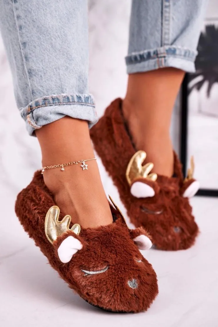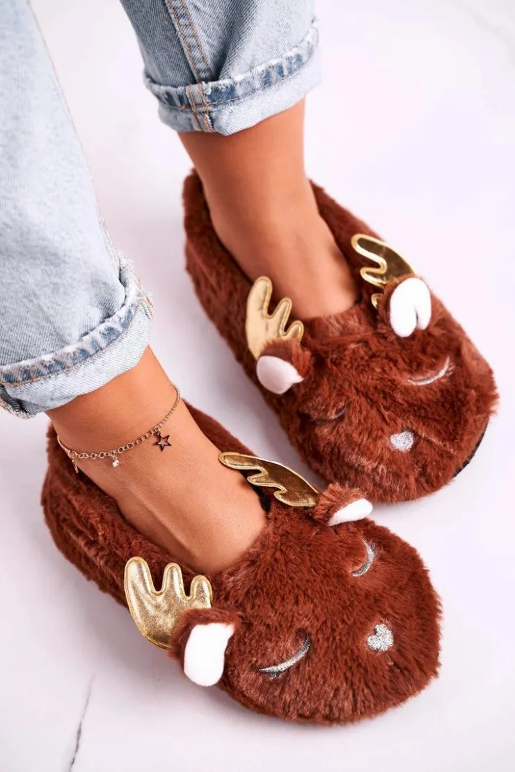 Boto Kapcie Klasyczne*Świąteczne Ocieplane Futrzane Papcie Brązowe Jingle Bells