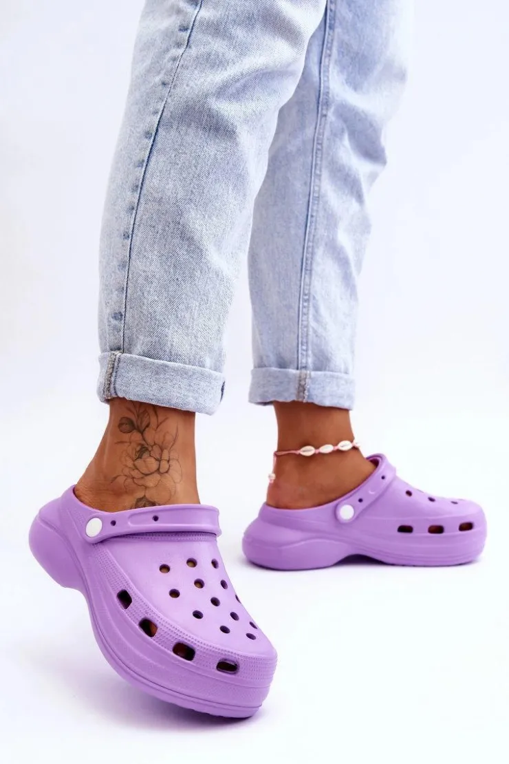 Damskie klapki wykonane z wysokojakościowego, piankowego tworzywa. Wkładka z wypustkami sprawia, że stopy nie będą już takie zmęczone, nawet po całym dniu użytkowania. Ruchomy paseczek zabezpiecza przed przesuwaniem się stopy. Buty zostały osadzone na masywnym obcasie oraz platformie. Idealny model do pracy w ogrodzie czy użytkowania w domu zamiast papci. Otwory w cholewce pozwalają na odpowiednią wentylację obuwia. Przy wyborze rozmiaru prosimy sugerować się tabelą rozmiarów.