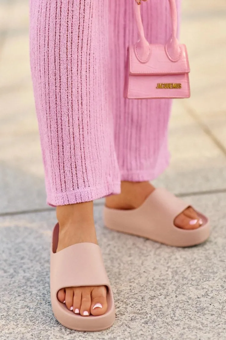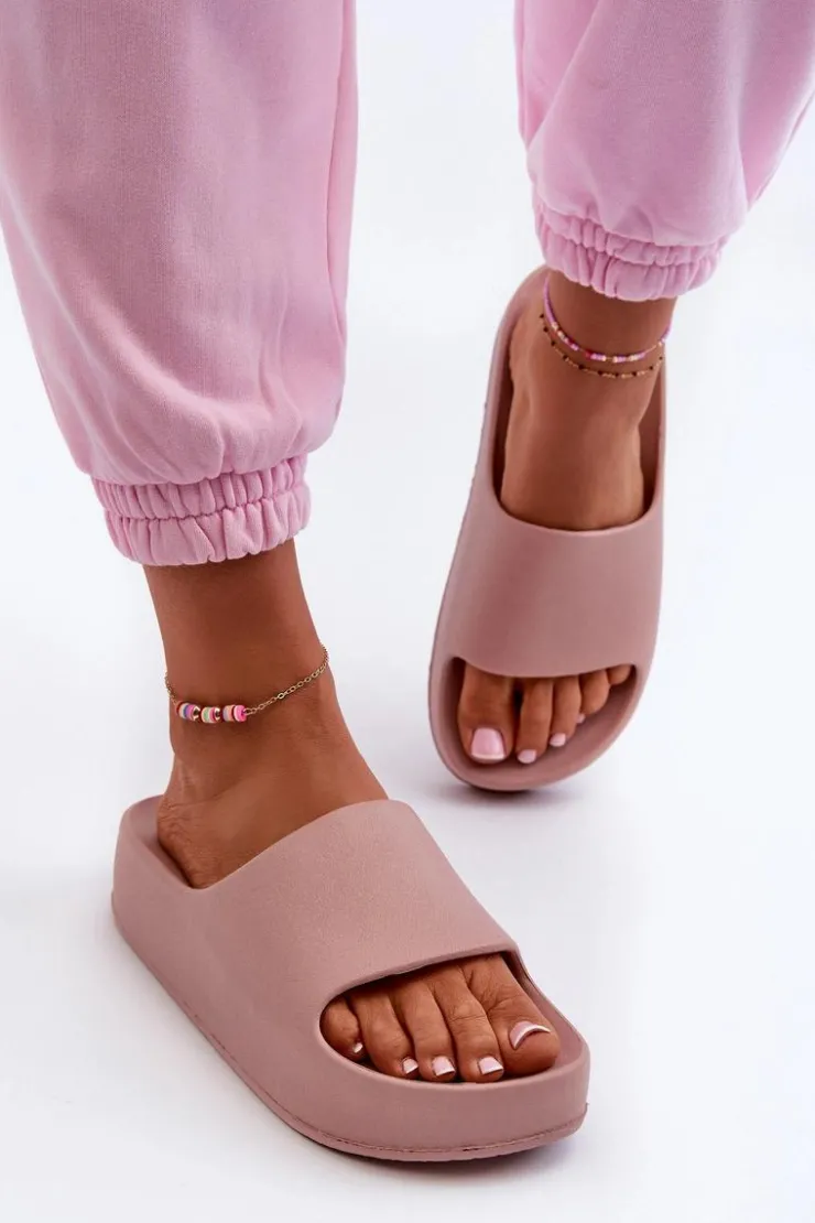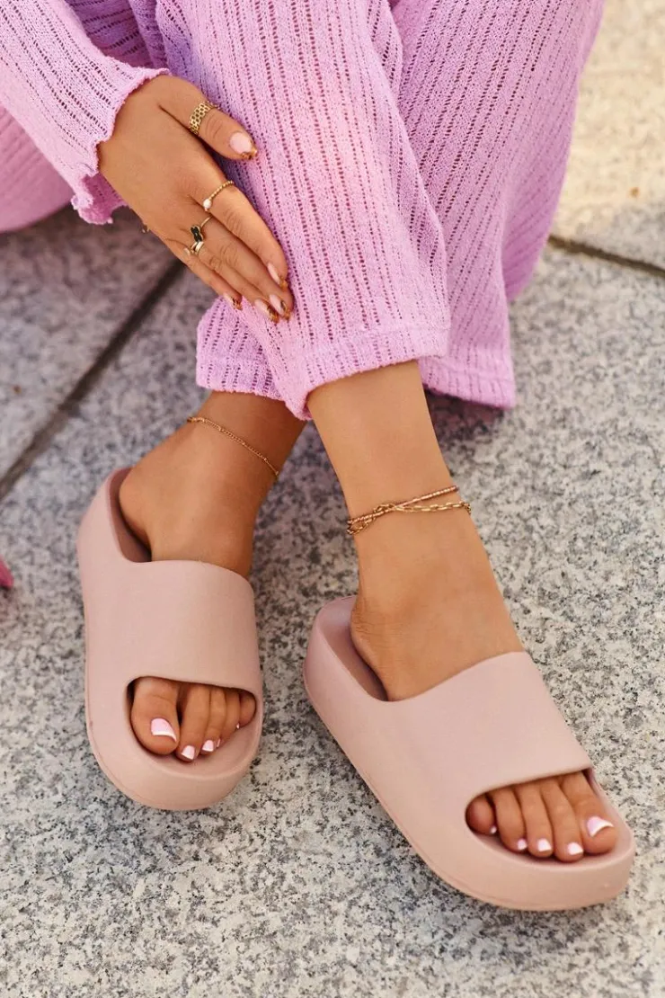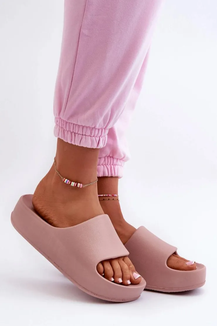 Damskie klapki na masywnej platformie. Wykonane z lekkiej pianki, to doskonały wybór na basen. Zapewniają wygodę i stabilność, idealne na relaksujące dni przy wodzie. Przy wyborze rozmiaru prosimy kierować się tabelą rozmiarów.