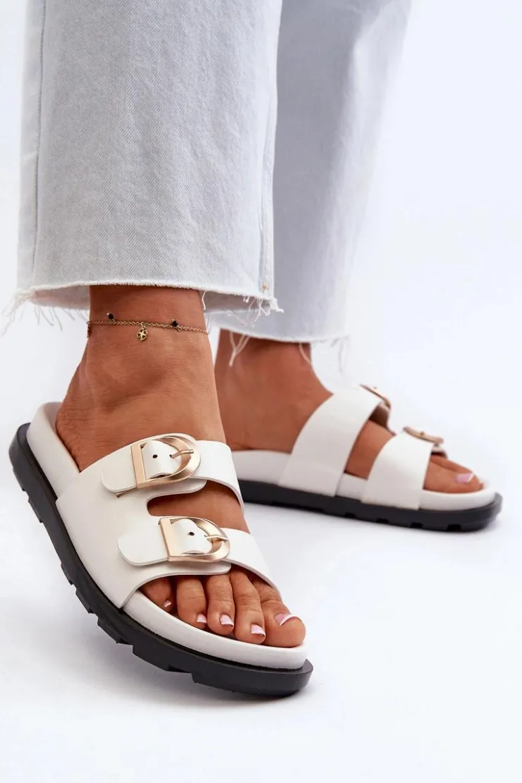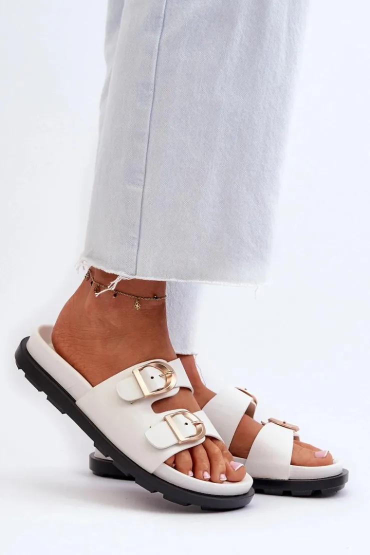 Klasyczne damskie klapki na platformie. Wykonane z eko skóry. Z przodu regulowane paski z klamrami, co pozwala na lepsze dopasowanie do stopy. Platforma zapewnia stabilność i wygodę noszenia przez cały dzień. Doskonałe na letnie spacery czy wieczorne wyjścia. Przy wyborze rozmiaru prosimy sugerować się tabelą rozmiarów.