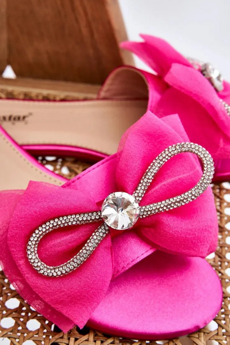 Boto Klapki Damskie Klasyczne*Damskie Klapki Z Kokardą I Cyrkoniami Fuksja Jolene