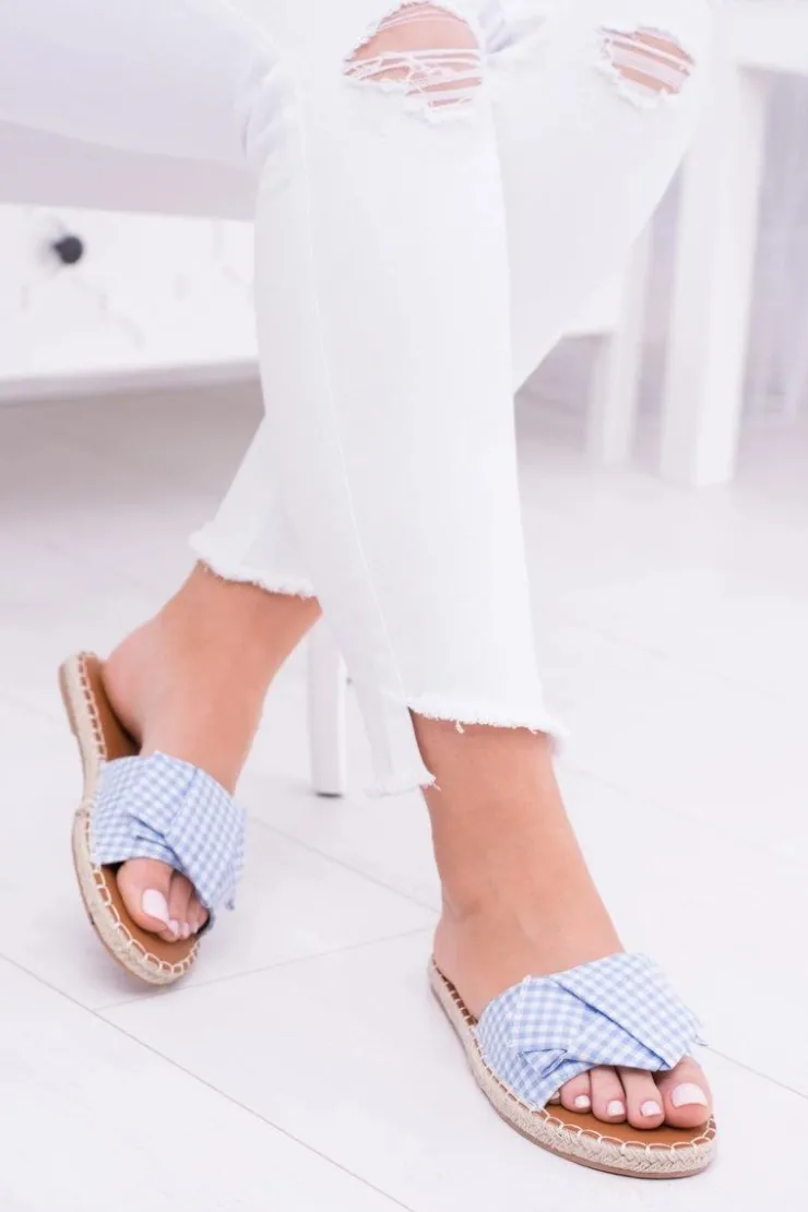 Boto Klapki Damskie Klasyczne*Damskie Klapki Z Kokardkami Pin-up Girl Błękitne