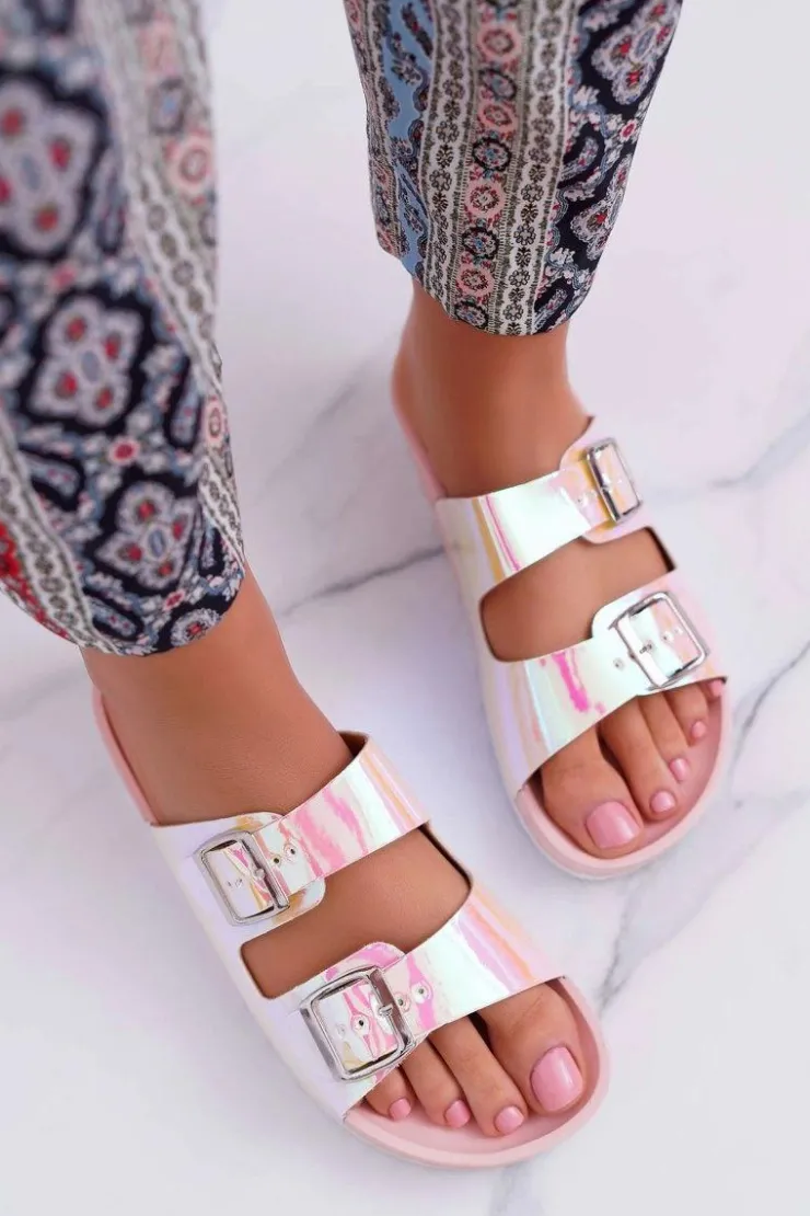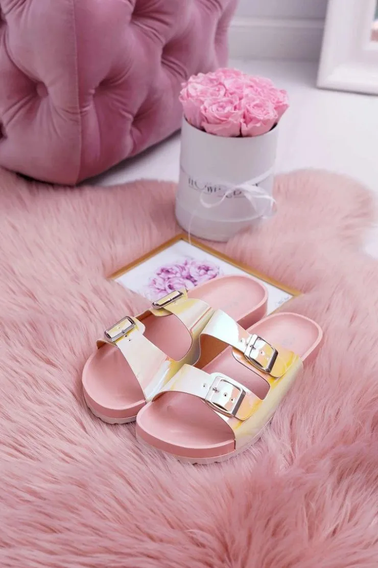 Boto Klapki Damskie Klasyczne*Damskie Różowe Profilowane Klapki Opalizujące Astramos
