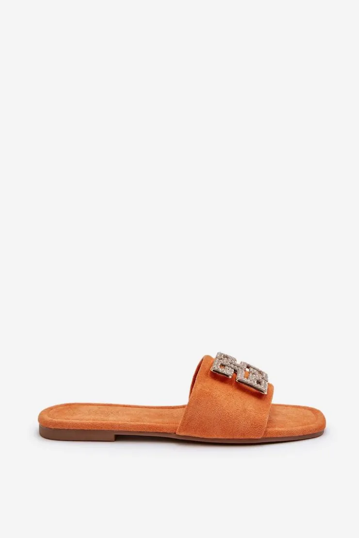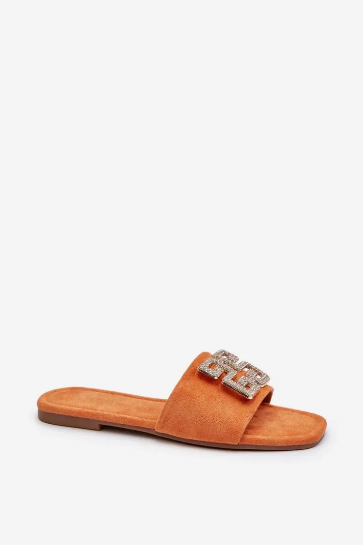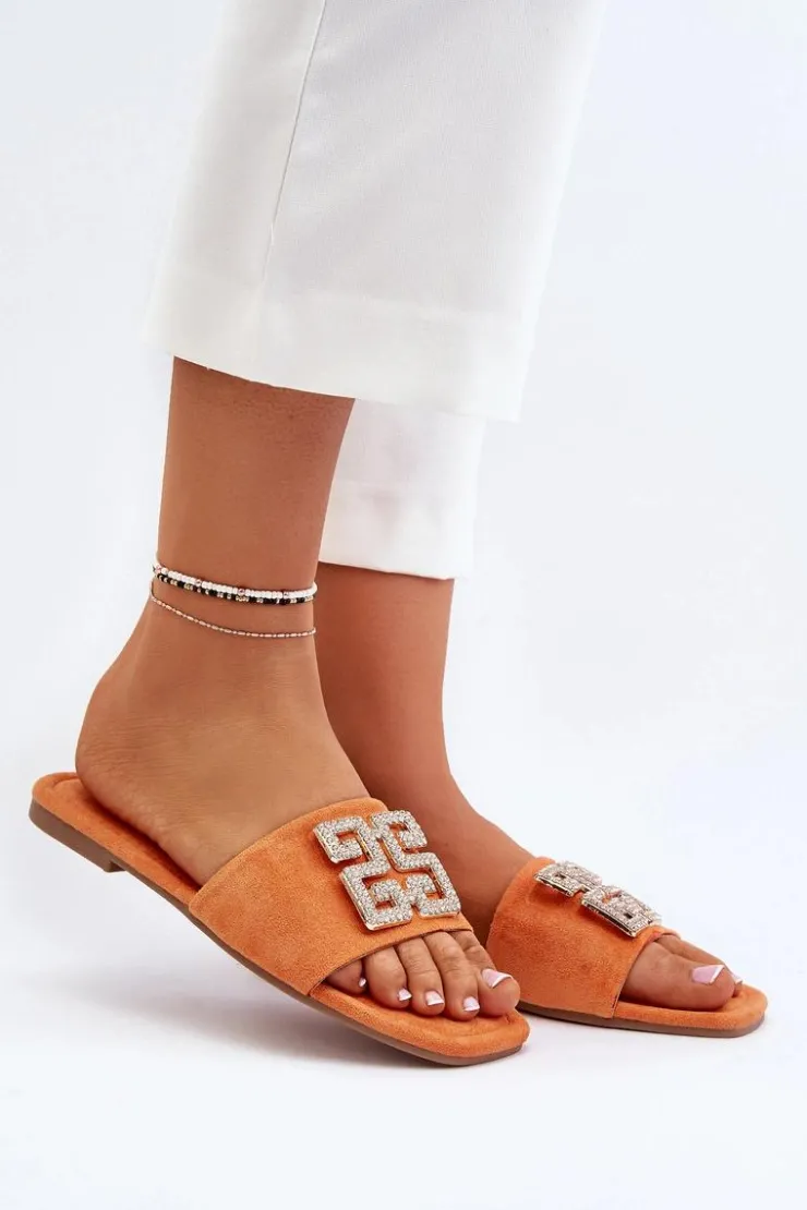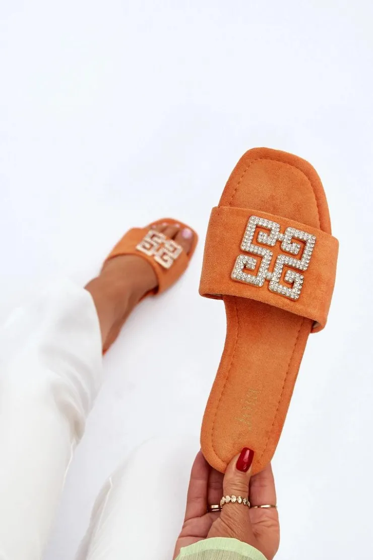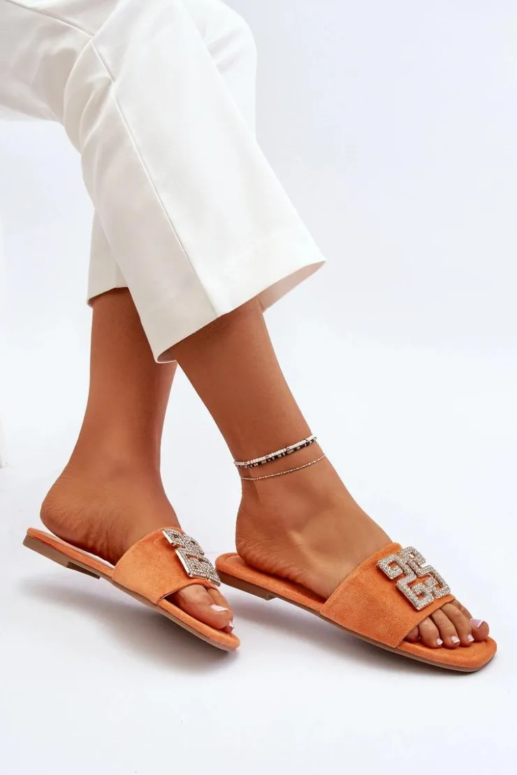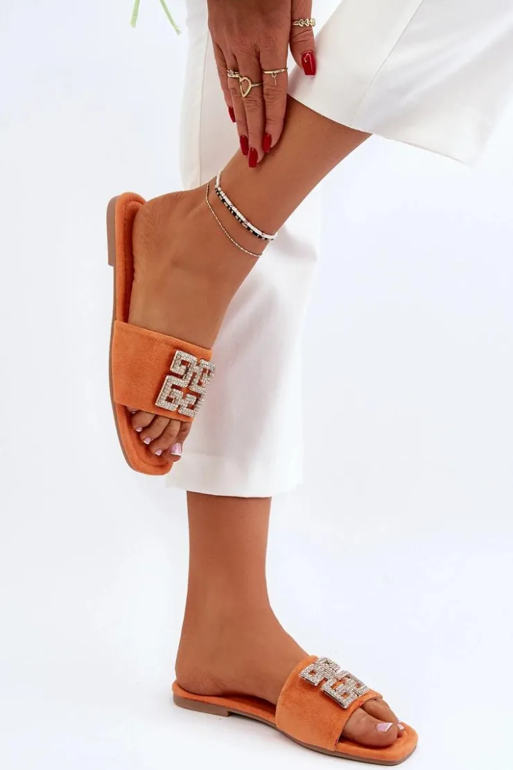 Klapki damskie osadzone na płaskim obcasie zapewniają wygodę noszenia przez cały dzień. Ozdoba z błyszczącymi cyrkoniami umieszczona z przodu dodaje im subtelnego blasku. Ten fason z pewnością podkreśli wyjątkowy charakter Twojej letniej stylizacji. Przy wyborze rozmiaru prosimy sugerować się tabelą rozmiarów.