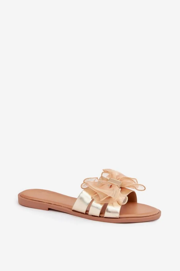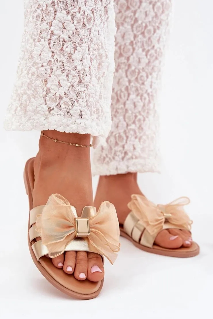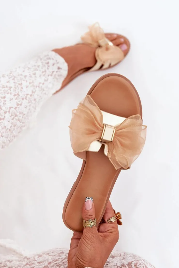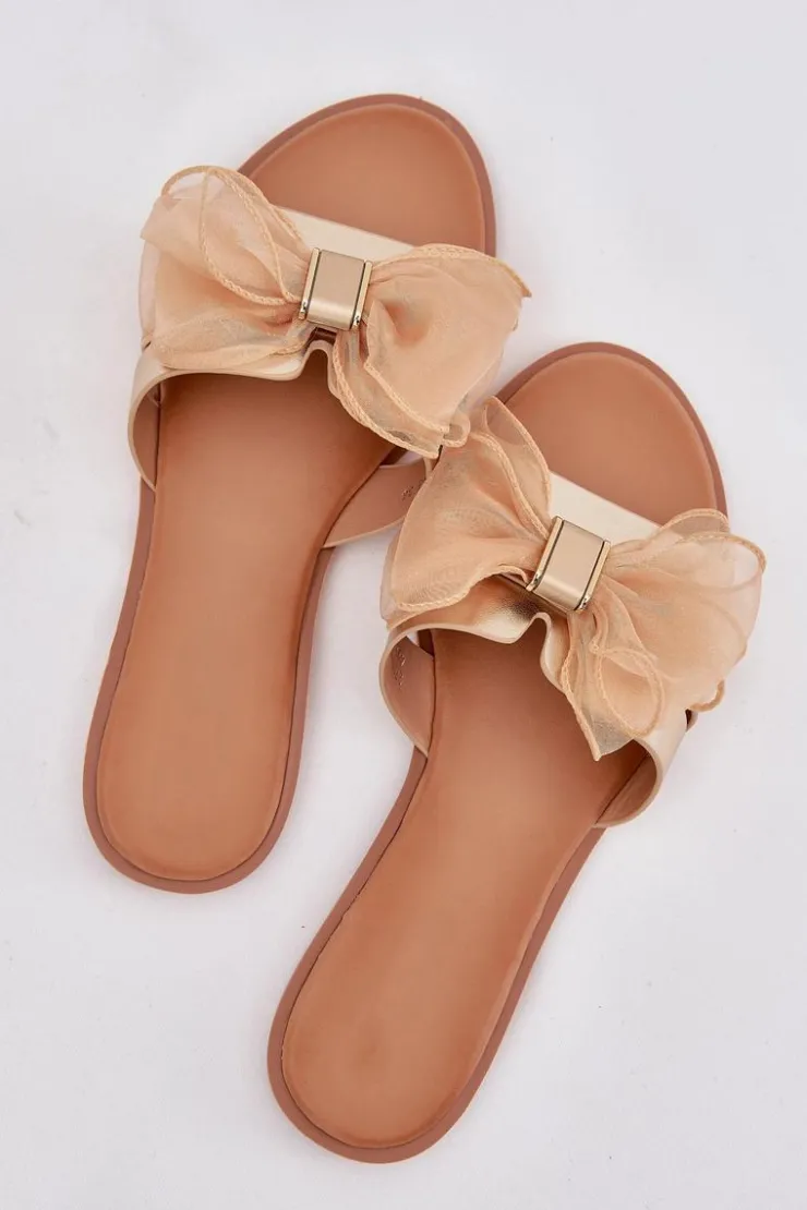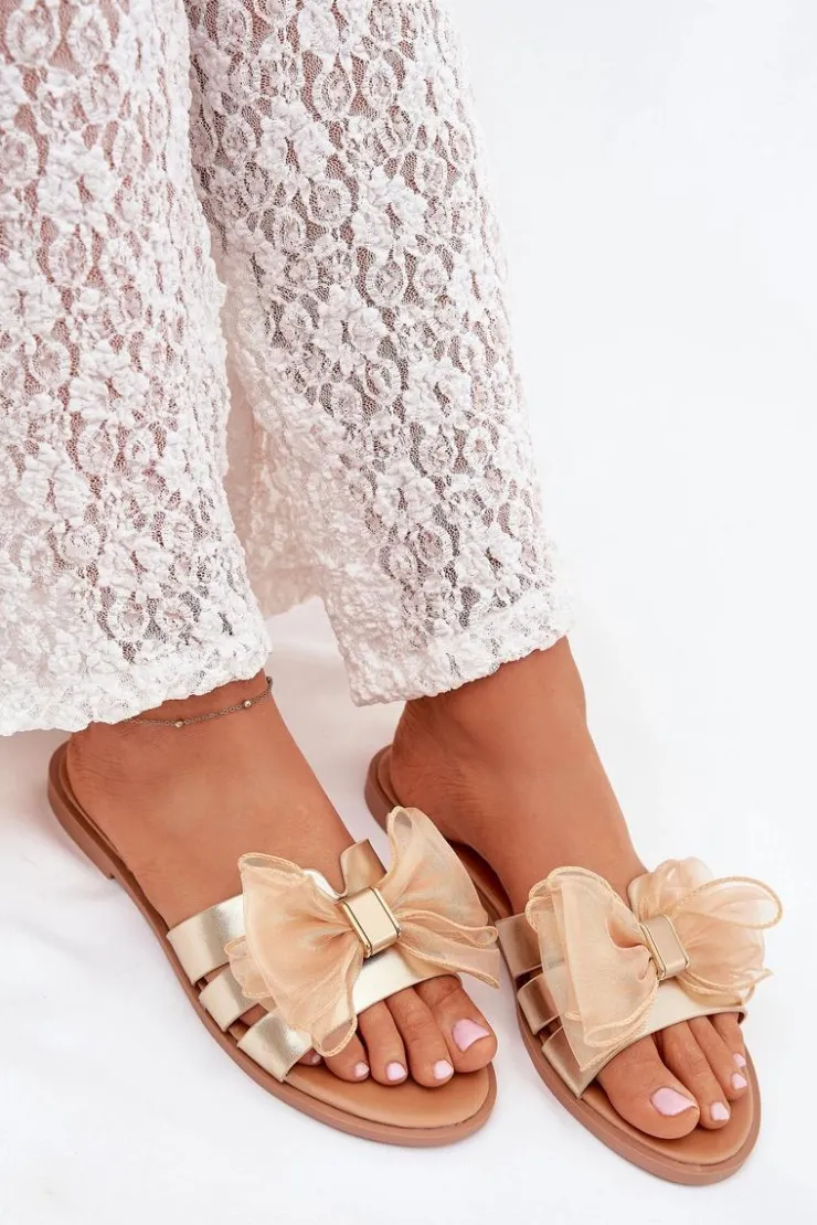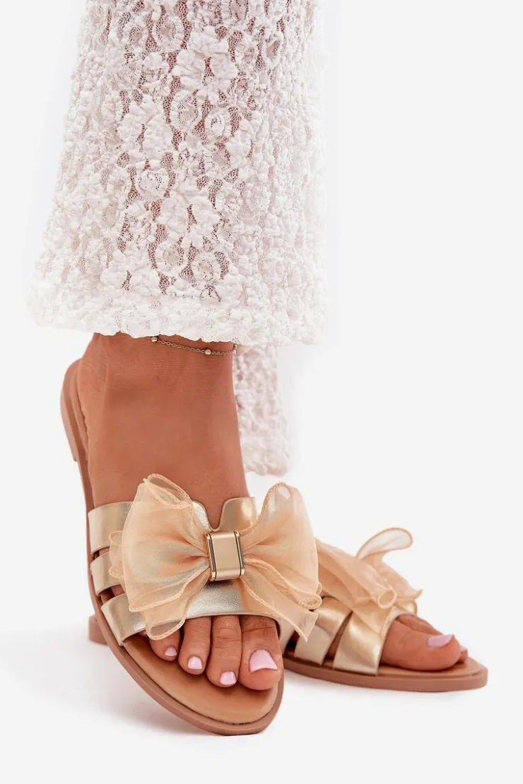 Klapki damskie z eko skóry, osadzone na płaskim obcasie, to doskonała propozycja na co dzień. Wyróżniają się tiulową kokardą. Idealne do letnich stylizacji, doskonale komponują się z sukienkami, spódnicami czy spodniami, łącząc prostotę z subtelnym urokiem. Przy wyborze rozmiaru prosimy sugerować się tabelą rozmiarów.