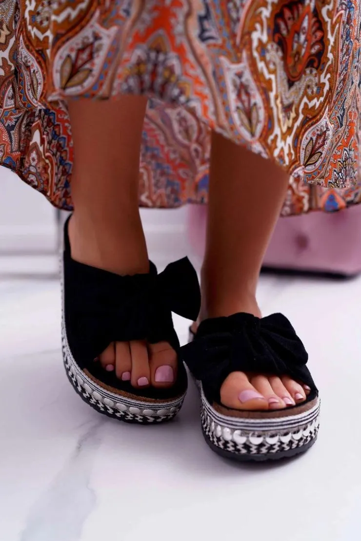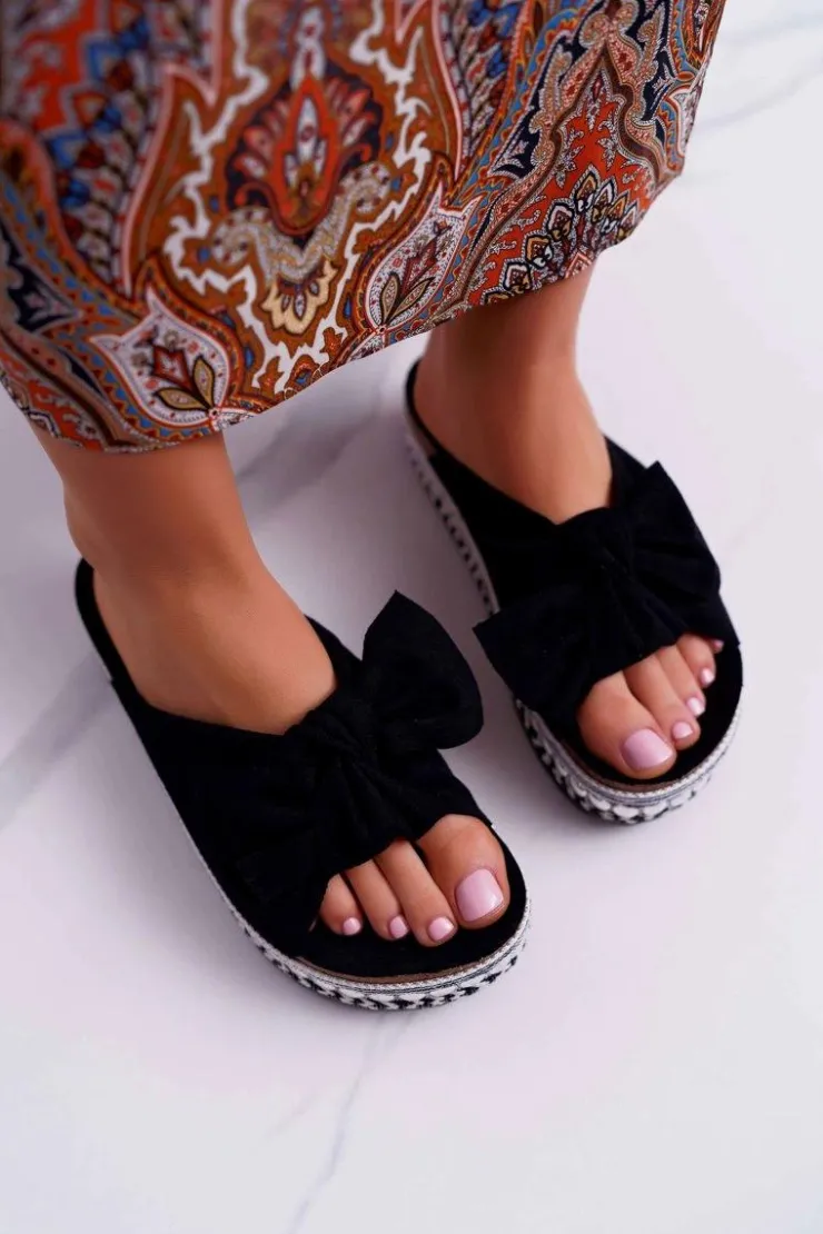 Boto Klapki Damskie Klasyczne*Klapki Damskie Z Kokardami Gruba Podeszwa Czarne Milady
