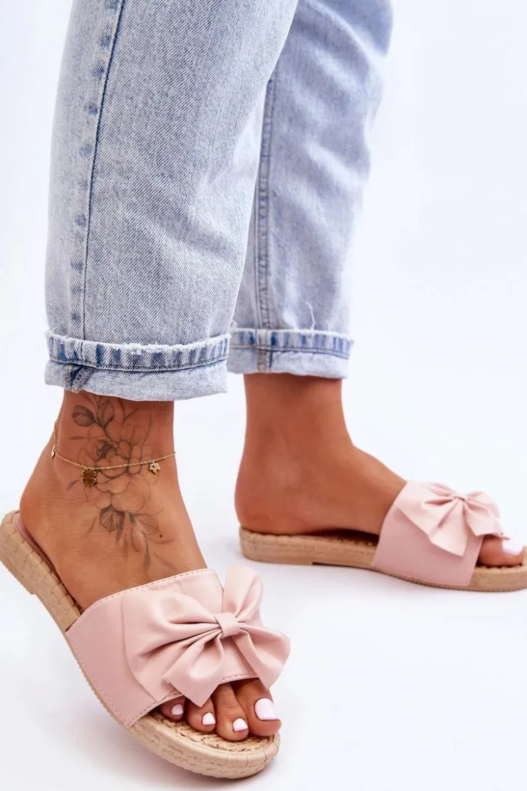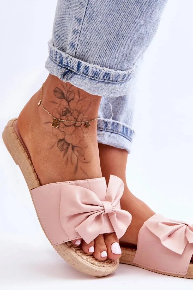 Klasyczne, wsuwane klapki damskie zostały wykonane z wierzchu z eko skóry. Dodatkowo z przodu posiadają uroczą kokardę. Wkładka oraz podeszwa zostały wykonane z gumowego tworzywa. Klapki są wygodne w użytkowaniu, a także elastyczne. Klapki osadzono na płaskim obcasie. Przy wyborze rozmiaru prosimy sugerować się tabelą rozmiarów.
