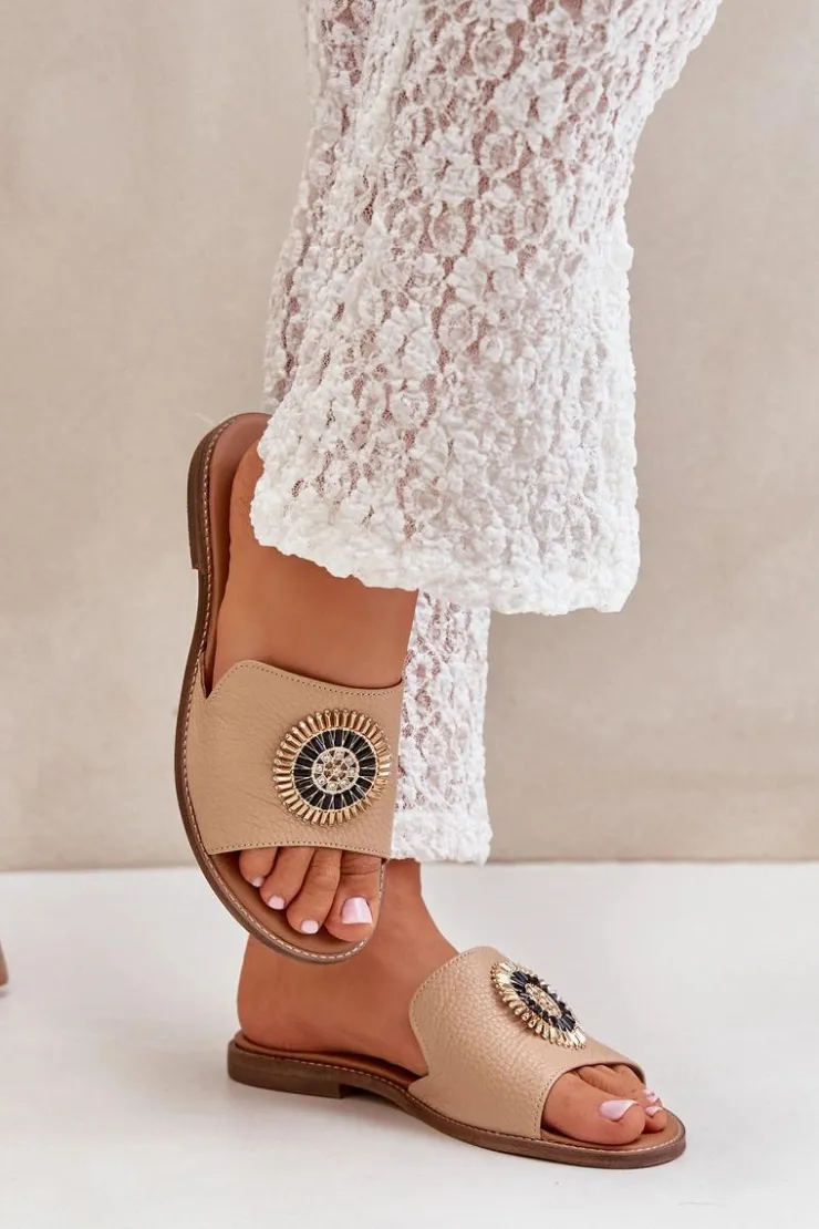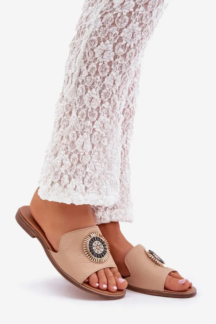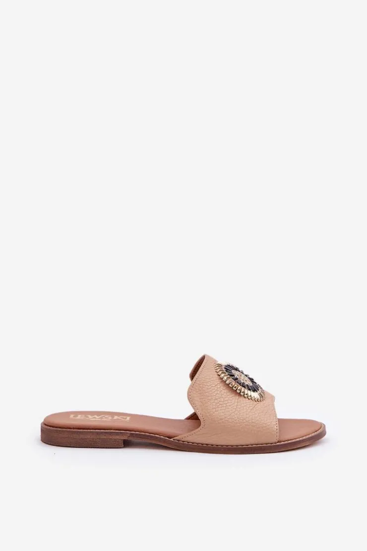 Damskie klapki wykonane z wysokiej jakości skóry naturalnej to połączenie elegancji i wygody. Osadzone na płaskim obcasie, zapewniają komfort noszenia przez cały dzień. Subtelna ozdoba na cholewce nadaje im wyjątkowego uroku i klasy, dzięki czemu świetnie sprawdzą się zarówno w casualowych, jak i bardziej eleganckich stylizacjach. Idealne na ciepłe dni, stanowią niezastąpiony dodatek do letnich sukienek, spodni czy spódnic. Przy wyborze rozmiaru prosimy sugerować się tabelą rozmiarów.