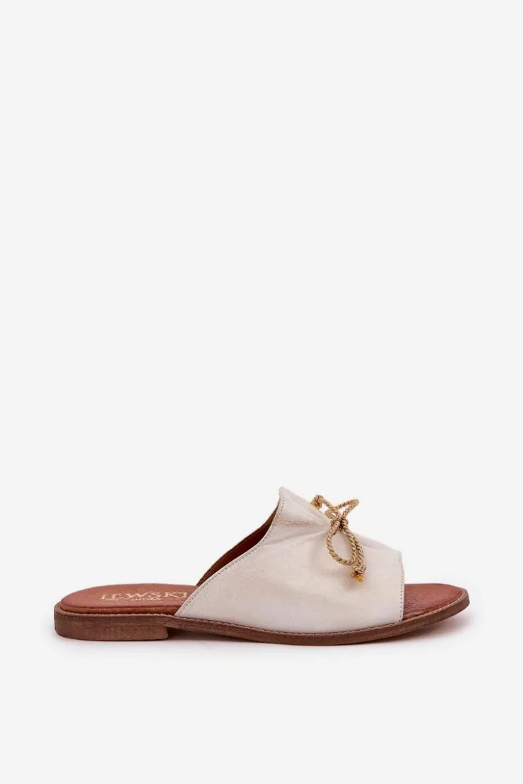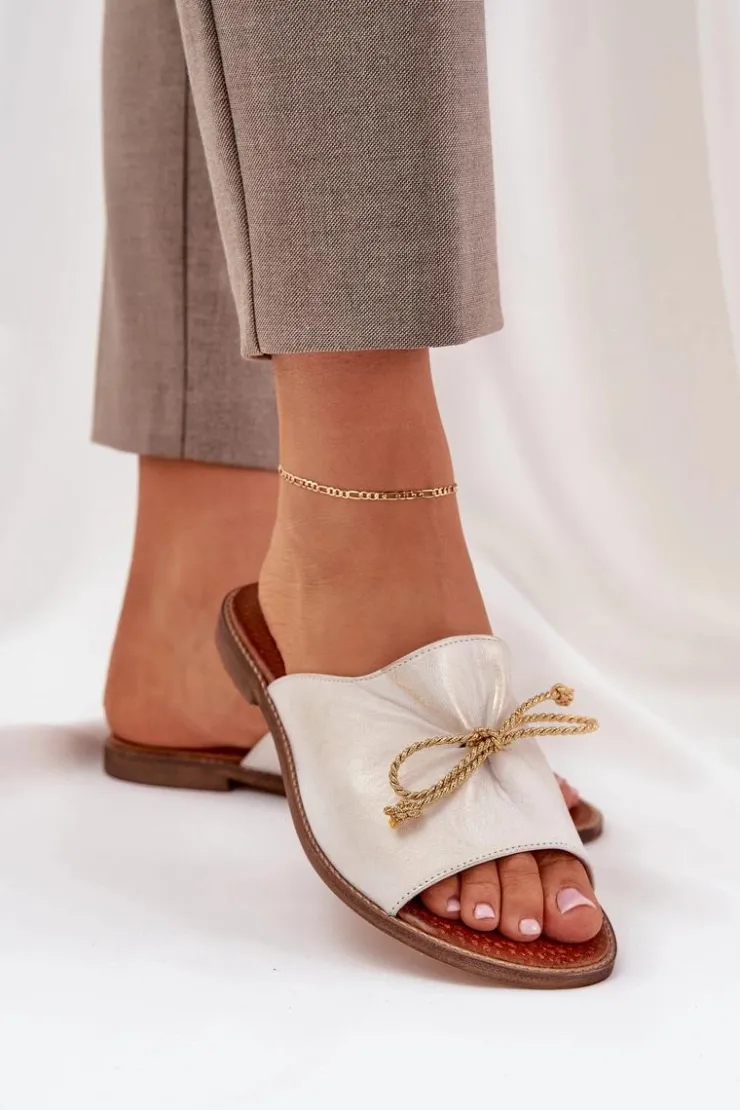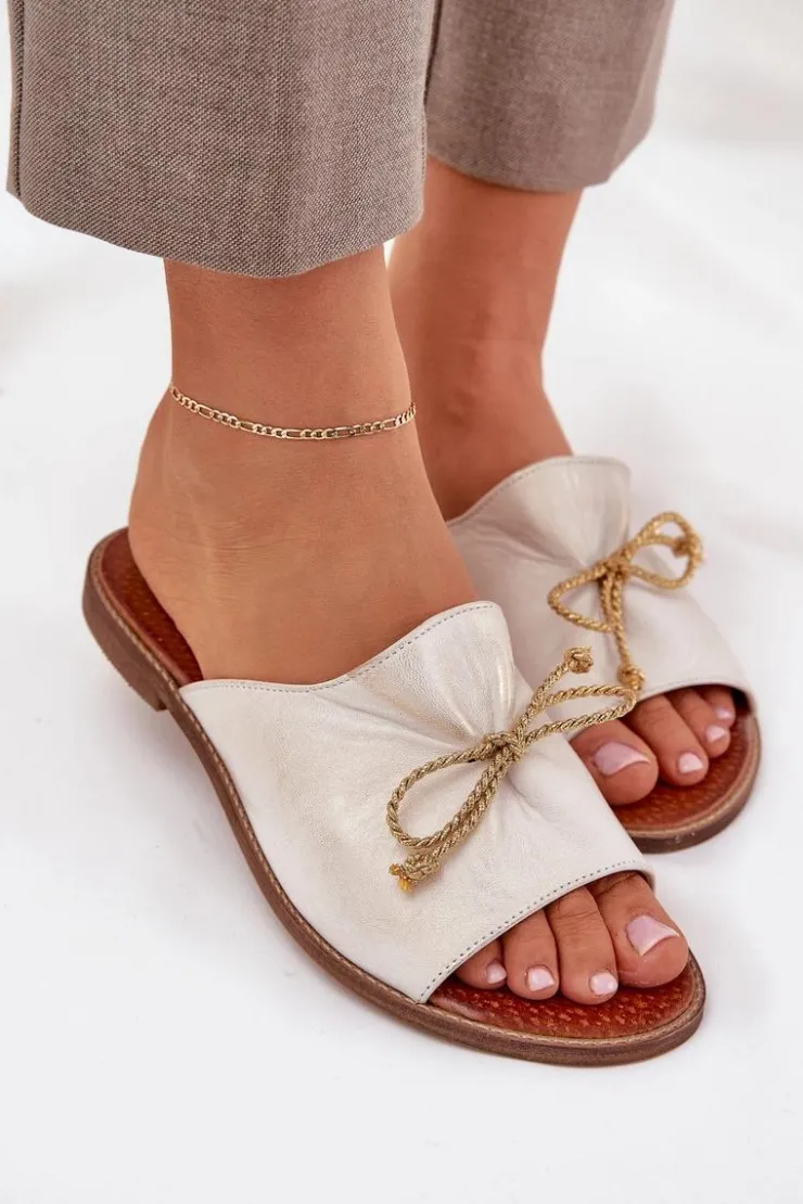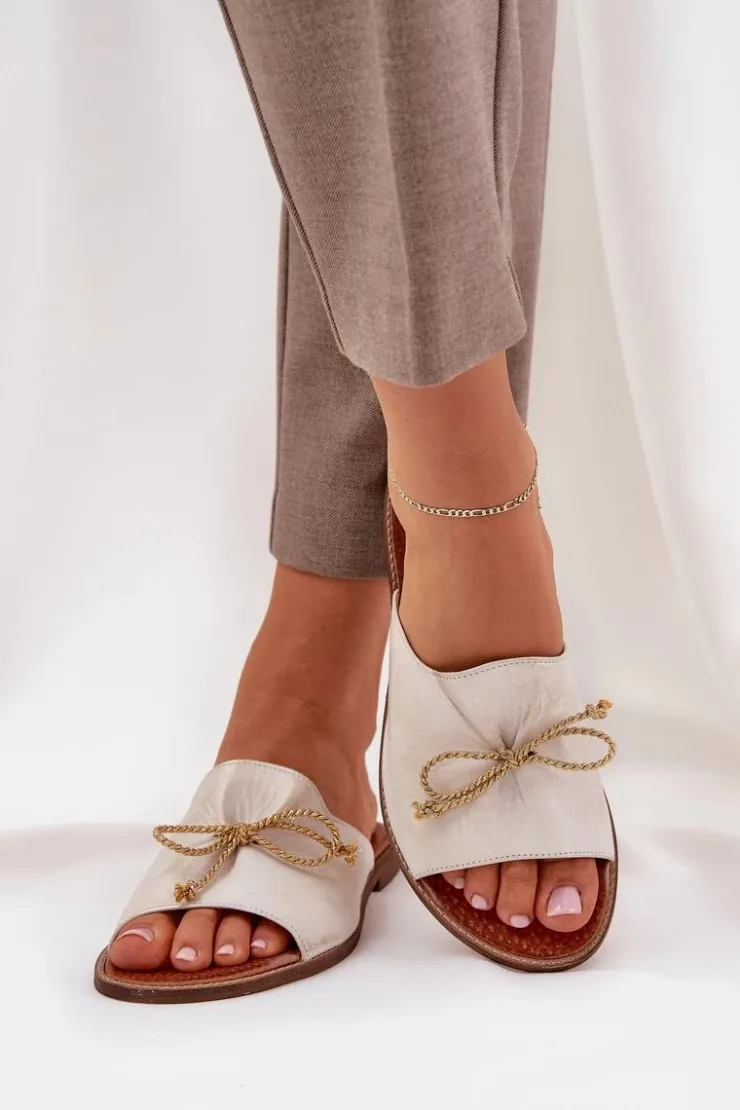 Eleganckie klapki z naturalnej skóry to subtelna propozycja, która łączy wygodę z elegancją. Osadzone na płaskim obcasie, zapewniają komfort przez cały dzień. Delikatne marszczenie na cholewce oraz urocza kokardka dodają im kobiecego uroku. Te klapki będą doskonałym wyborem na letnie dni, idealnie komponując się z lekkimi sukienkami czy casualowymi stylizacjami. Przy wyborze rozmiaru prosimy sugerować się tabelą rozmiarów.
