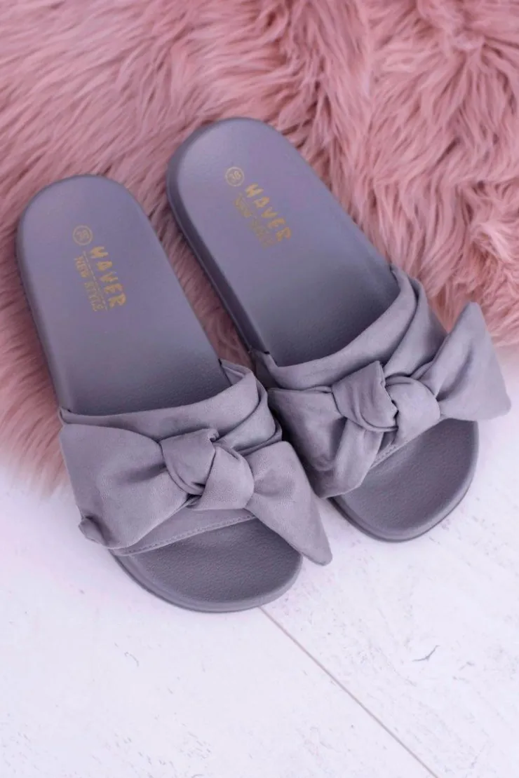 Boto Klapki Damskie Klasyczne*Szare Damskie Zamszowe Klapki z Kokardą Merbolo