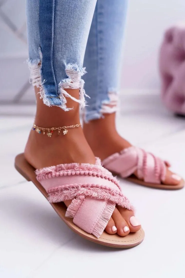 Outlet Boto Damskie Zamszowe Klapki Lewski Shoes 3226 Fuksja